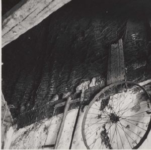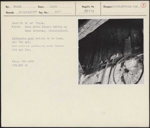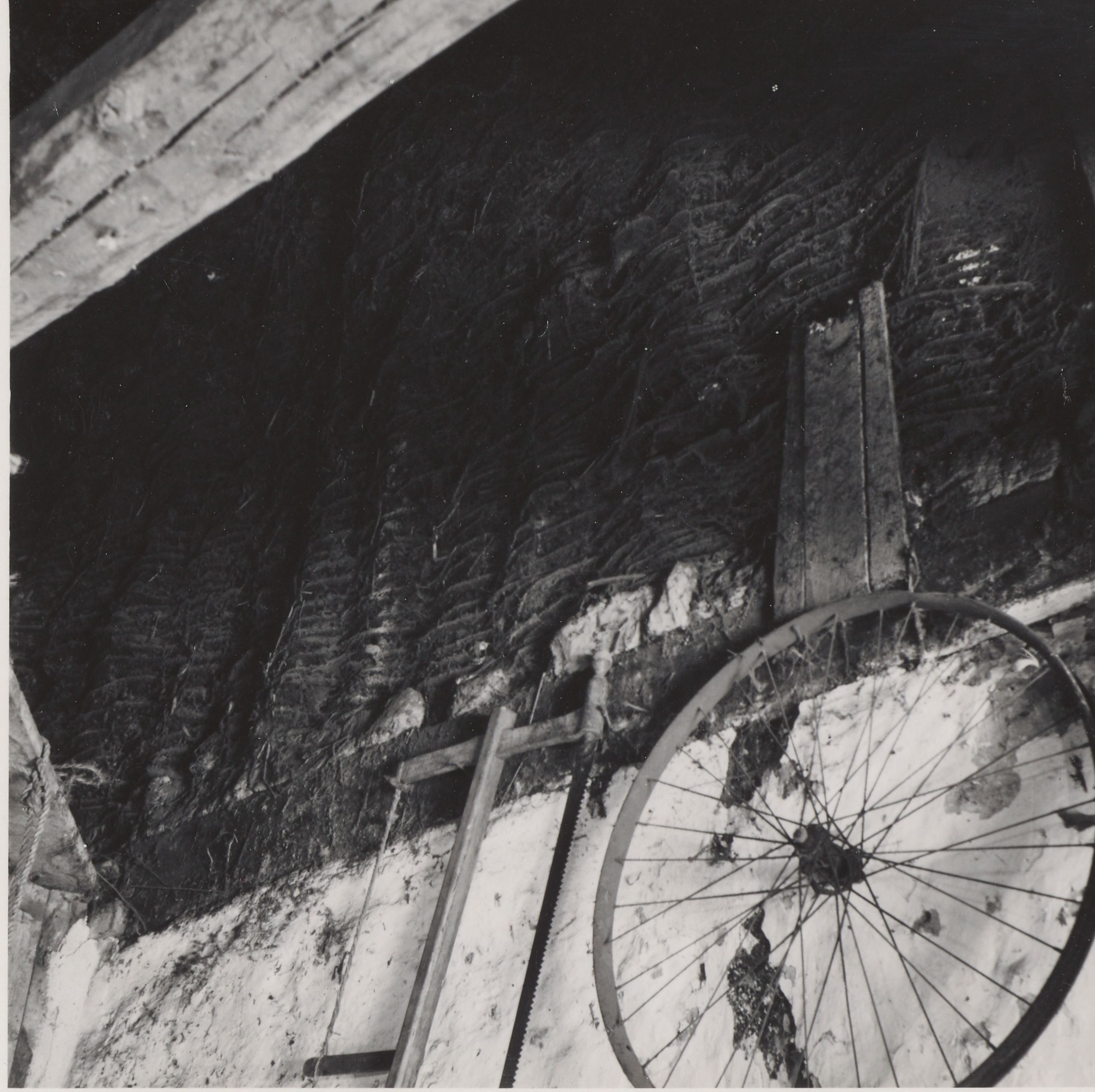 Maskingenkendt tekst fra arkivkort. Hatr Nr 64 af Vorså. Ejere: Jens peter Jensen Bakken og Hans Petersen, Dronninglund. Indvendig gavl mellem de to huse, set fra syd. Mod nord er gavlen nu helt klinet til med ler. Es.A. fot 1949 Jfr.NEU nr