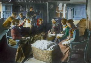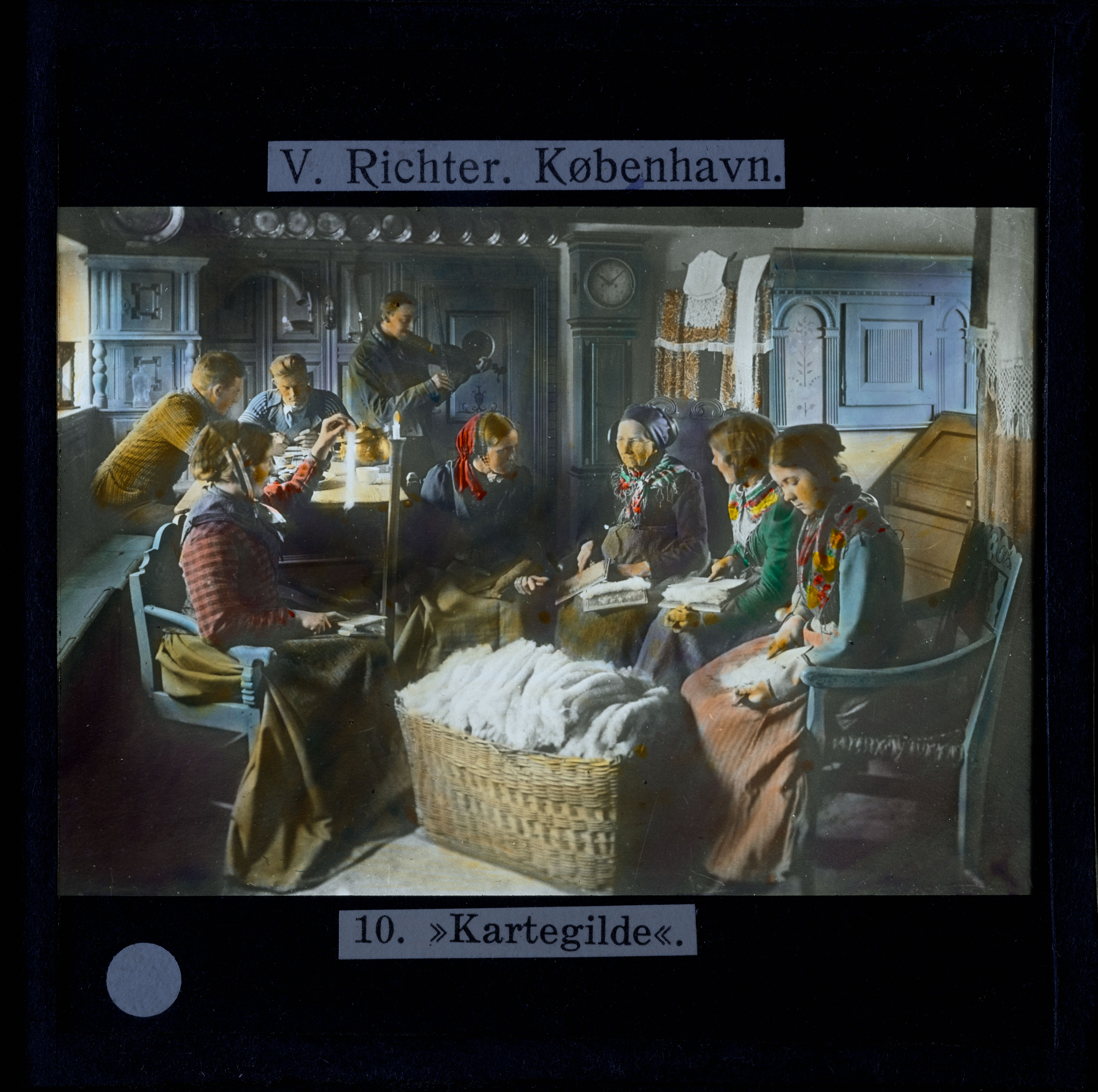Titel hentet fra original dias. Billedet er håndkoloreret og stammer fra lysbilledserie nr. 223 benævnt "Midtjylland". På dias er påsat labels: "V. Richter. København." og "10. »Kartegilde«.". I serien er 52 lysbilleder. Firmaet V. Richter producerede, kuraterede og distribuerede lysbilledserier i primært 1920'erne og 1930'erne. Dias måler ca. 8 x 8 cm.