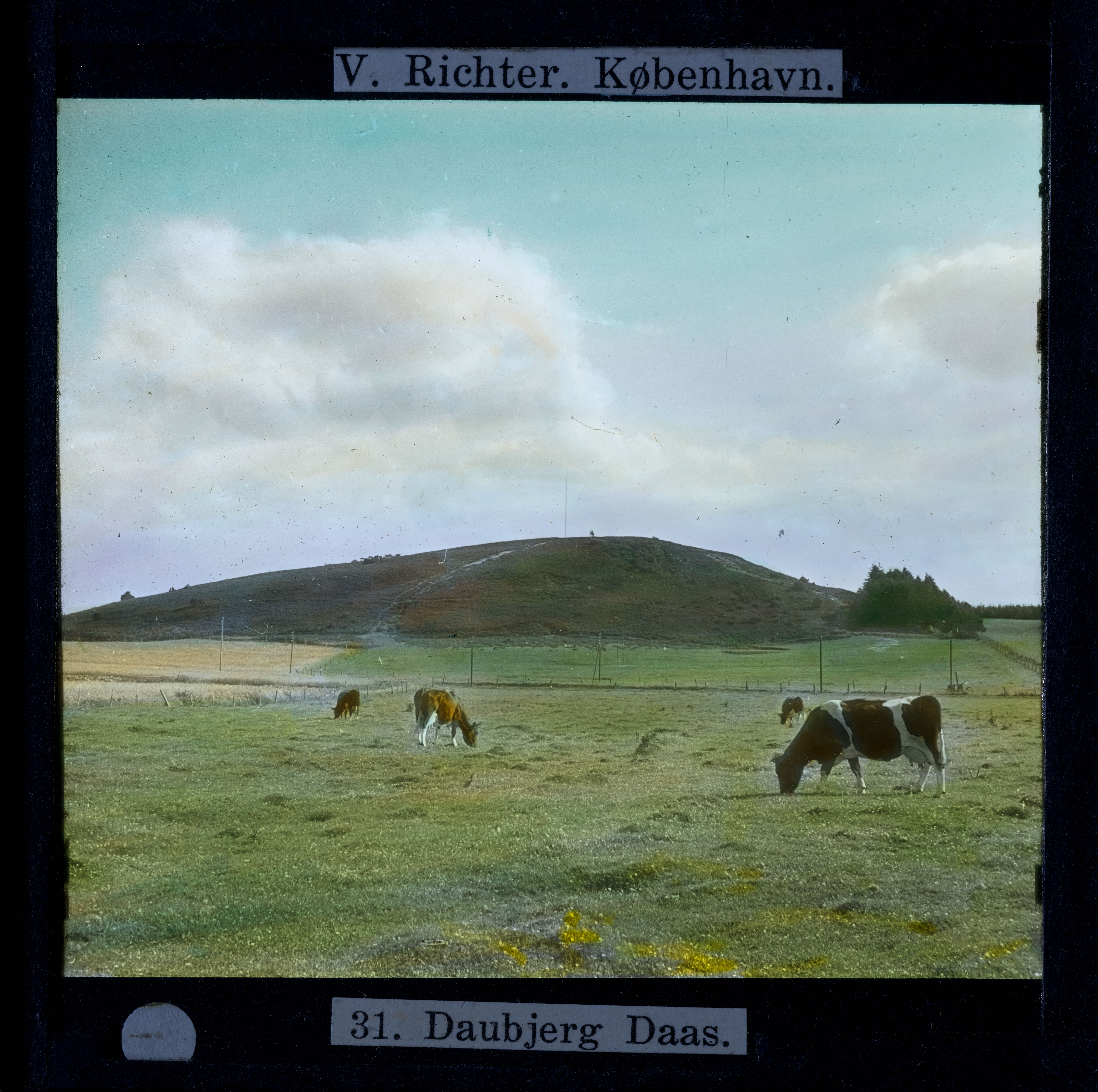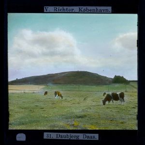Billedet er håndkoloreret og stammer fra lysbilledserie nr. 223 benævnt "Midtjylland". På dias er påsat labels: "V. Richter. København." og "31. Daubjerg Daas.". I serien er 52 lysbilleder. Firmaet V. Richter producerede, kuraterede og distribuerede lysbilledserier i primært 1920'erne og 1930'erne. Dias måler ca. 8 x 8 cm.