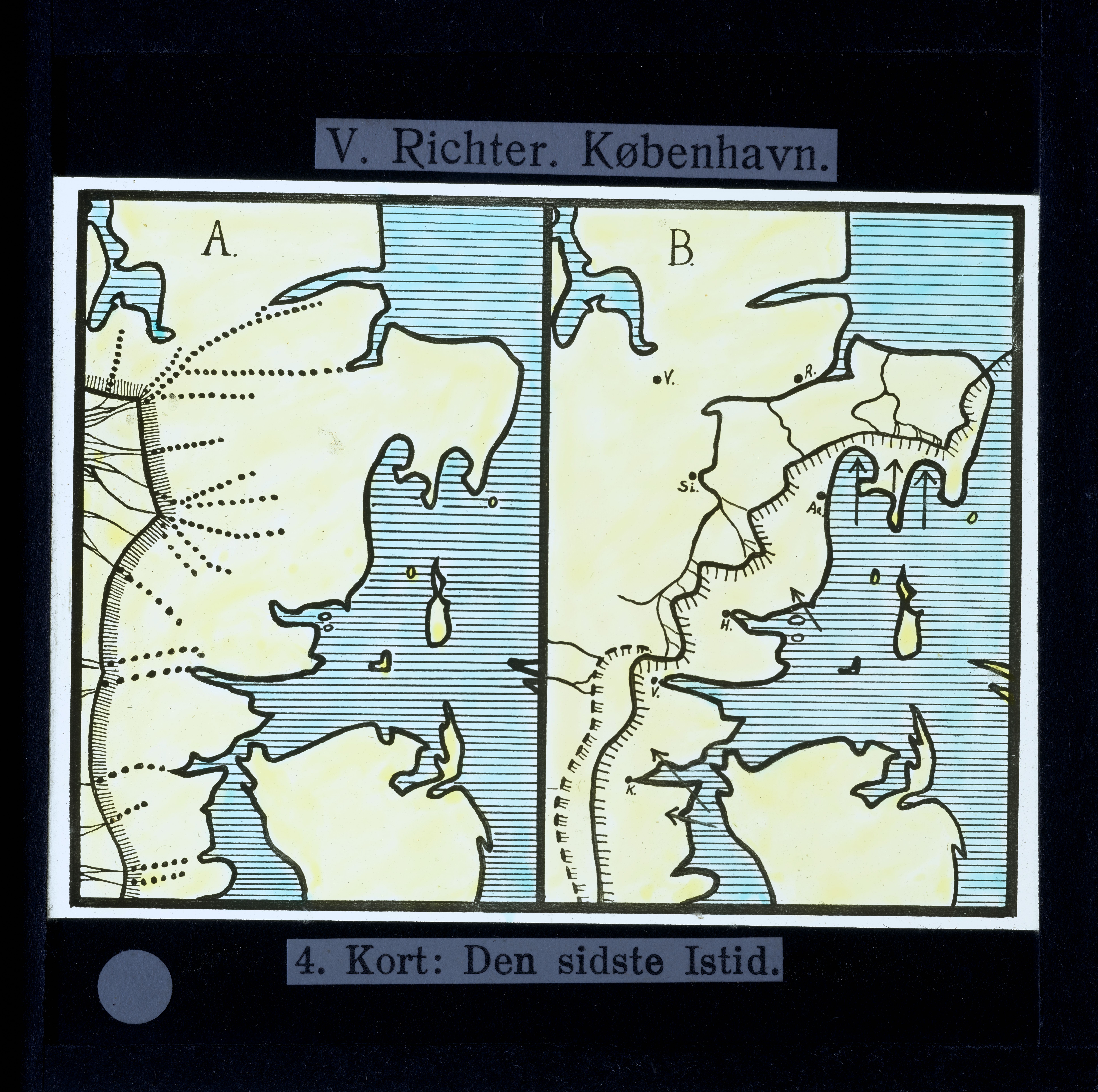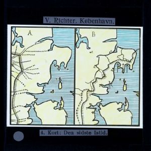 Titel hentet fra original dias. Billedet er håndkoloreret og stammer fra lysbilledserie nr. 222 benævnt "Gennem Østjylland". På dias er påsat labels: "V. Richter. København." og "4. Kort: Den sidste Istid.". I serien er 55 lysbilleder. Firmaet V. Richter producerede, kuraterede og distribuerede lysbilledserier i primært 1920'erne og 1930'erne. Dias måler ca. 8 x 8 cm.