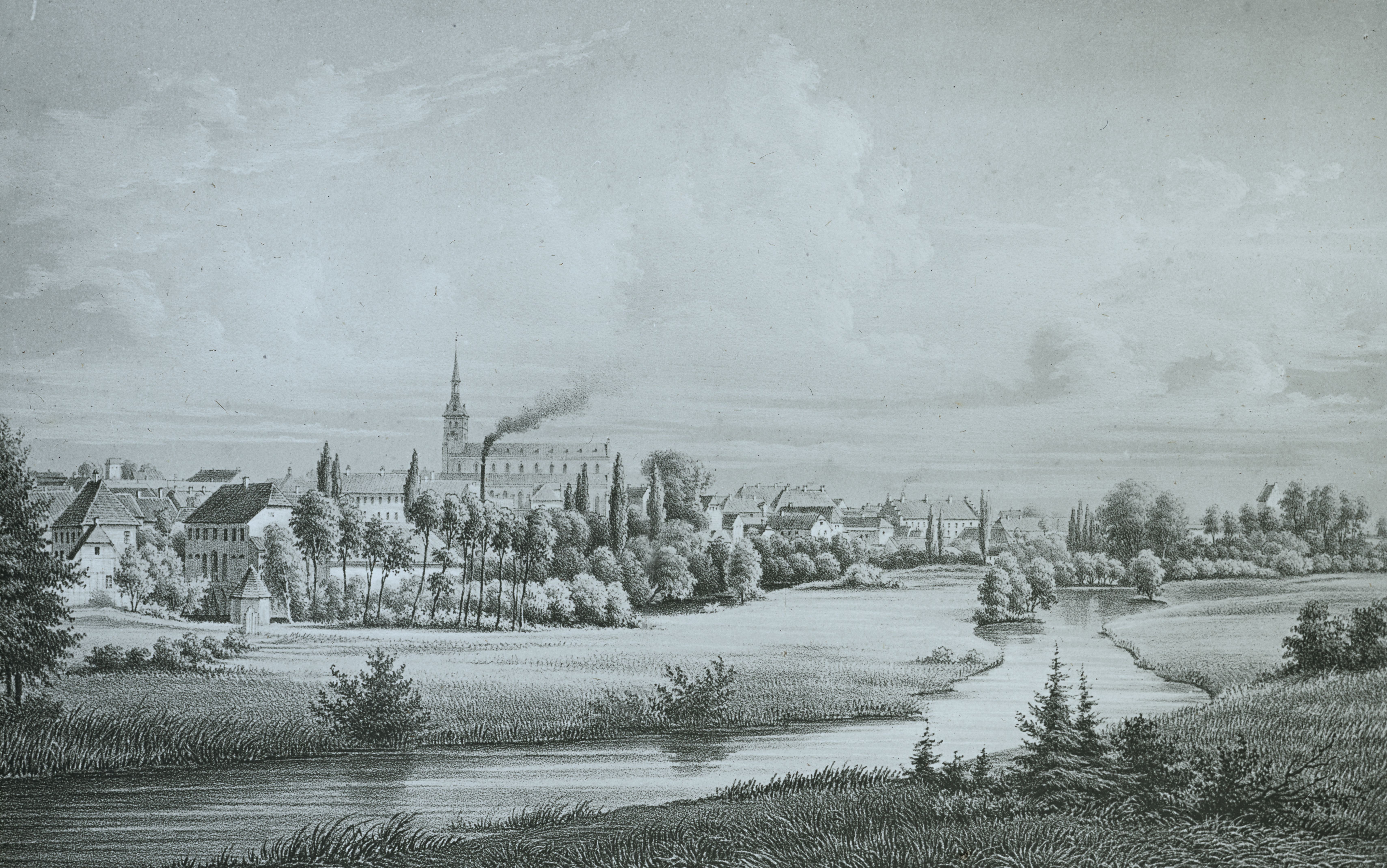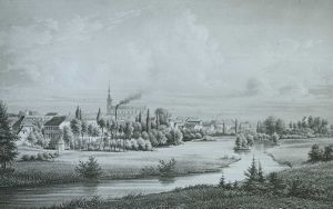 Billedet er sort-hvid og stammer fra lysbilledserie nr. 226 benævnt "De Sydfynske Øer". På dias er påsat labels: "V. Richter. København." og "5. Odense paa H.C. Andersens Tid". I serien er 37 lysbilleder. Firmaet V. Richter producerede, kuraterede og distribuerede lysbilledserier i primært 1920'erne og 1930'erne. Dias måler ca. 8 x 8 cm.
