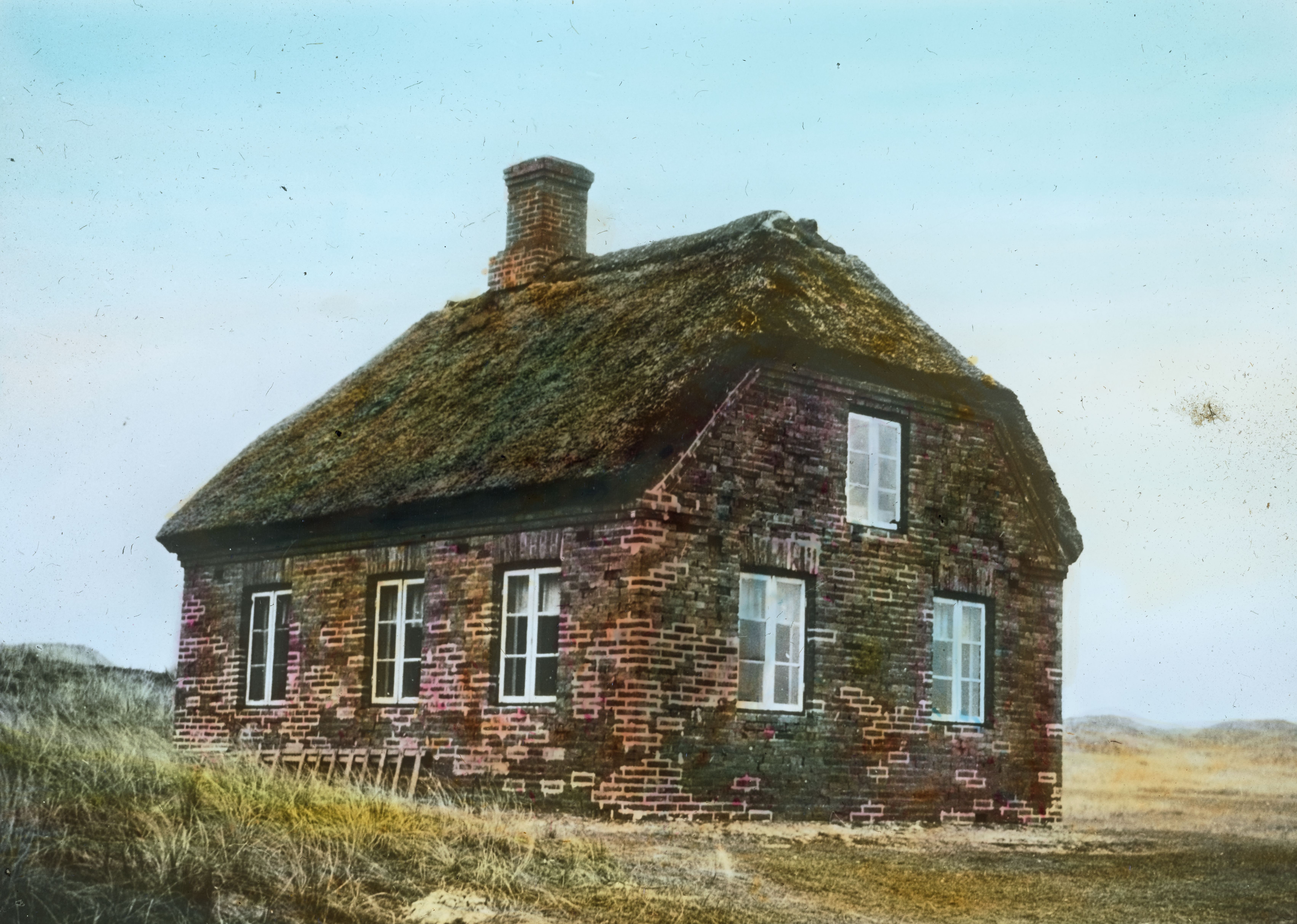 Titel hentet fra original dias. Billedet er håndkoloreret og stammer fra lysbilledserie nr. 248 benævnt "Vestjylland". På dias er påsat labels: "V. Richter. København." og "23. Husby Klitskole.". I serien er 59 lysbilleder. Firmaet V. Richter producerede, kuraterede og distribuerede lysbilledserier i primært 1920'erne og 1930'erne. Dias måler ca. 8 x 8 cm.
