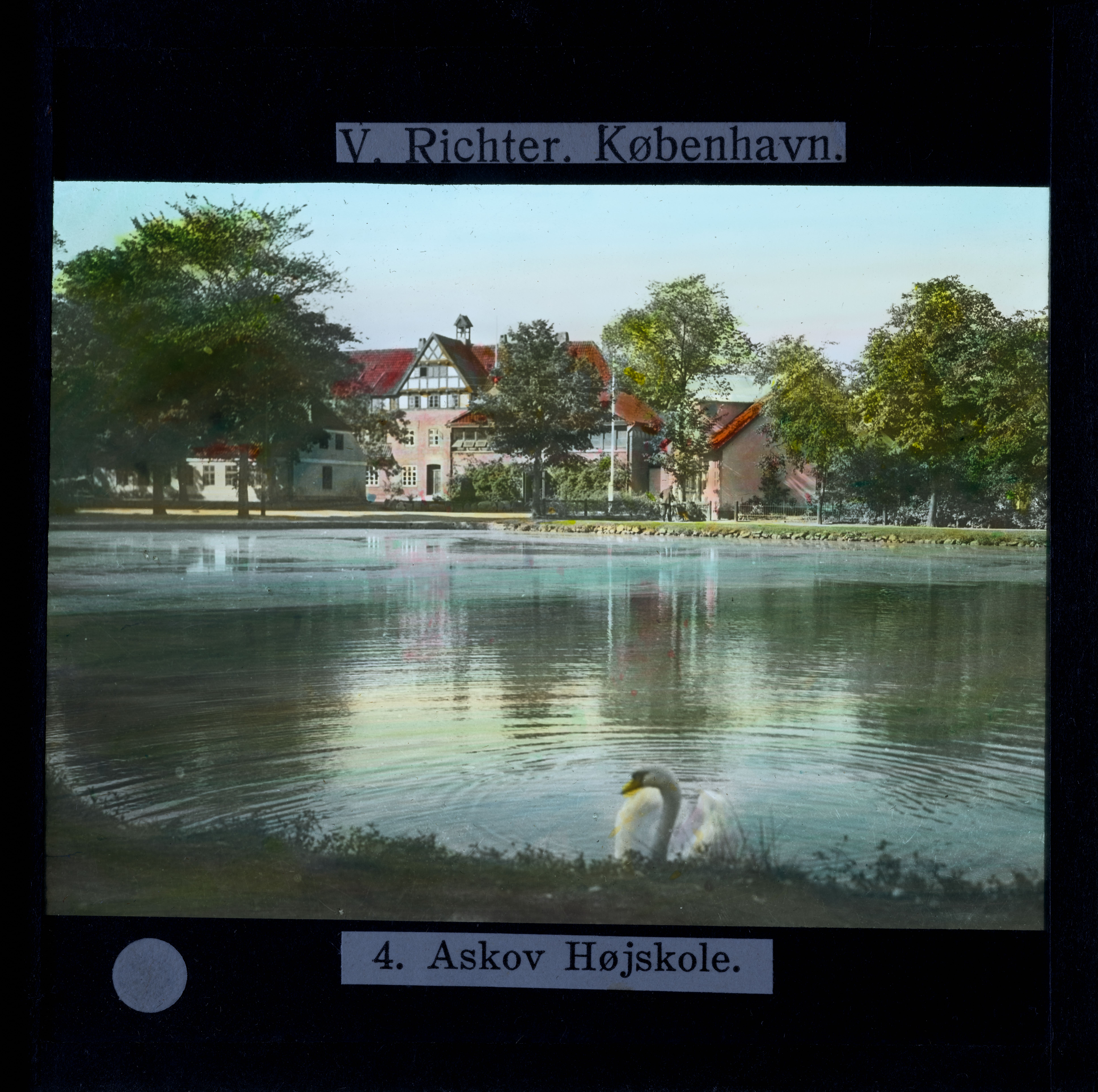 Titel hentet fra original dias. Billedet er håndkoloreret og stammer fra lysbilledserie nr. 259 benævnt "Vort land". På dias er påsat labels: "V. Richter. København." og "4. Askov Højskole.". I serien er 69 lysbilleder. Firmaet V. Richter producerede, kuraterede og distribuerede lysbilledserier i primært 1920'erne og 1930'erne. Dias måler ca. 8 x 8 cm.