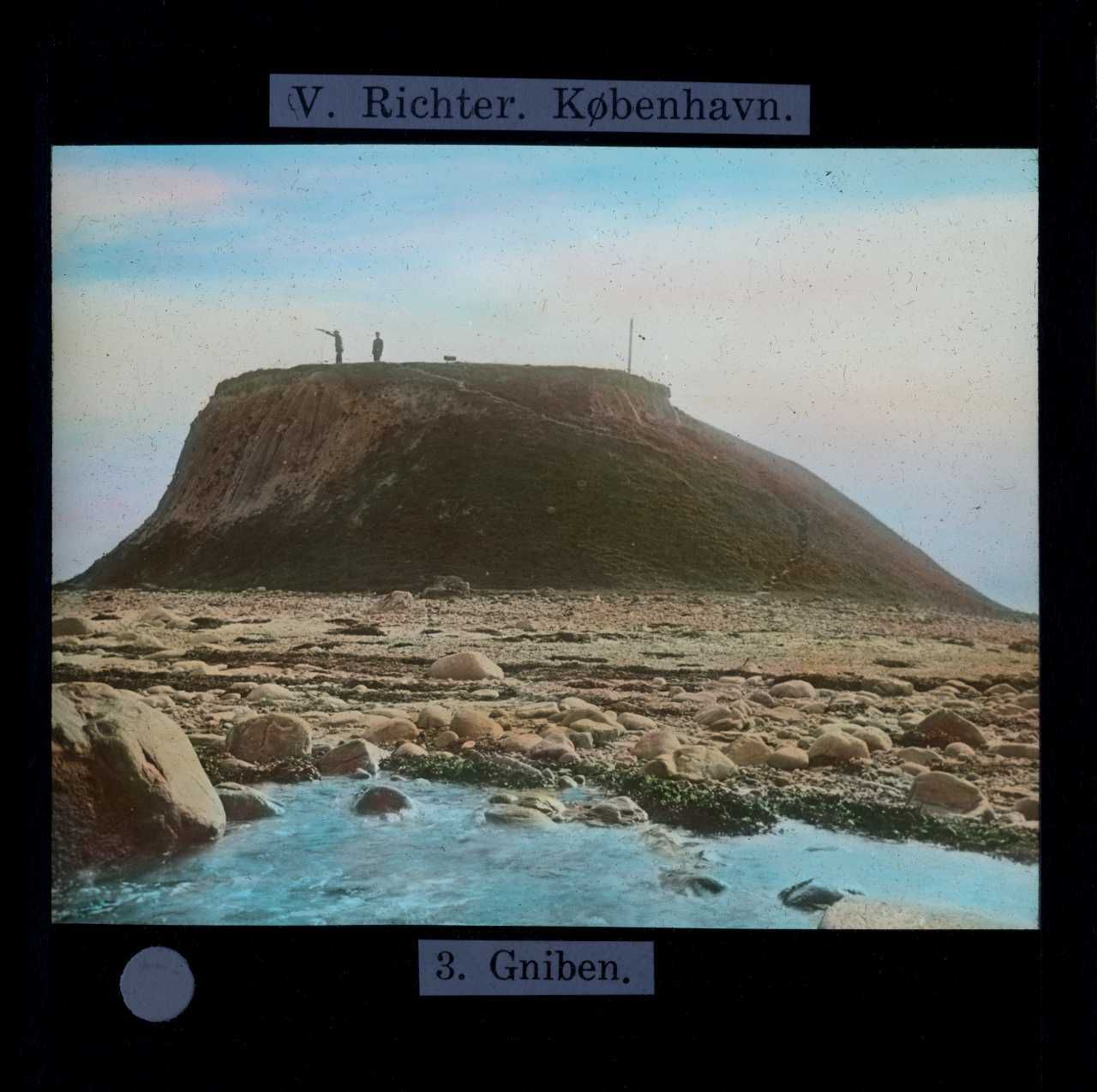 Billedet er håndkoloreret og stammer fra lysbilledserie nr. 115 benævnt "Vestsjælland". På dias er påsat labels: "V. Richter. København." og "3. Gniben.". I serien er 38 lysbilleder. Firmaet V. Richter producerede, kuraterede og distribuerede lysbilledserier i primært 1920'erne og 1930'erne. Dias måler ca. 8 x 8 cm.