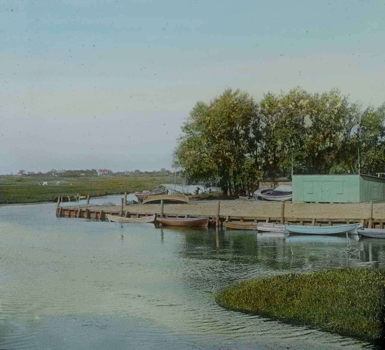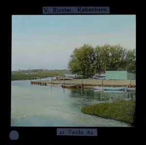 Titel hentet fra original dias. Billedet er håndkoloreret og stammer fra lysbilledserie nr. 117 benævnt "Danmark". På dias er påsat labels: "V. Richter. København." og "42 Varde Aa". I serien er 213 lysbilleder. Firmaet V. Richter producerede, kuraterede og distribuerede lysbilledserier i primært 1920'erne og 1930'erne. Dias måler ca. 8 x 8 cm.