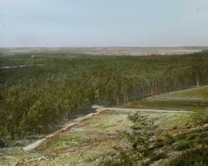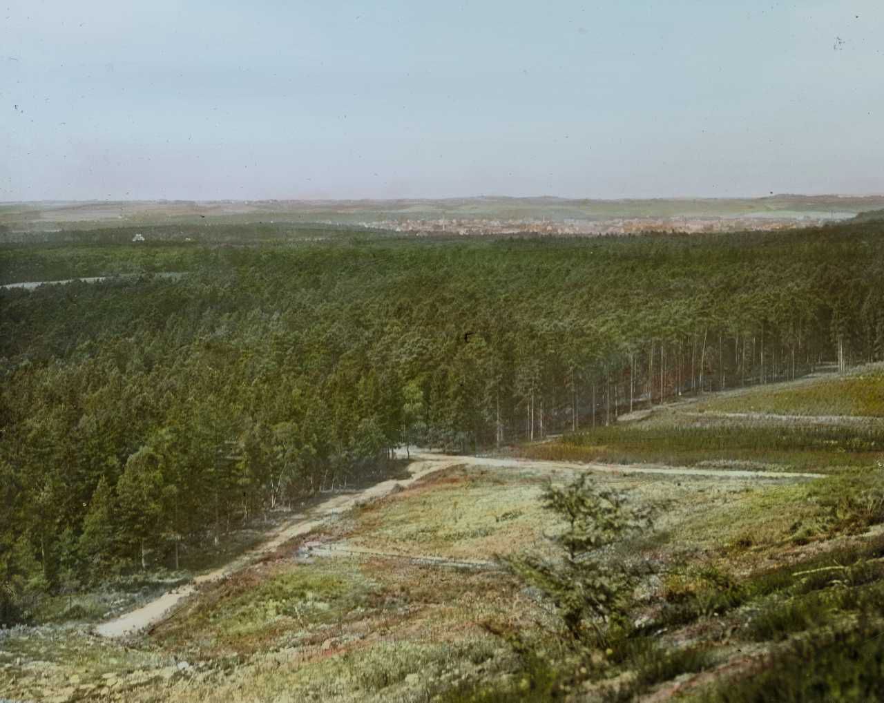 Titel hentet fra original dias. Billedet er håndkoloreret og stammer fra lysbilledserie nr. 117 benævnt "Danmark". På dias er påsat labels: "V. Richter. København." og "22 Udsigt mod Silkeborg". I serien er 213 lysbilleder. Firmaet V. Richter producerede, kuraterede og distribuerede lysbilledserier i primært 1920'erne og 1930'erne. Dias måler ca. 8 x 8 cm.