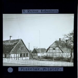 Billedet er sort-hvid og stammer fra lysbilledserie nr. 220 benævnt "Lolland-Falster". På dias er påsat labels: "V. Richter. København." og "Fiskebæk, Falster". I serien er 52 lysbilleder. Firmaet V. Richter producerede, kuraterede og distribuerede lysbilledserier i primært 1920'erne og 1930'erne. Dias måler ca. 8 x 8 cm.