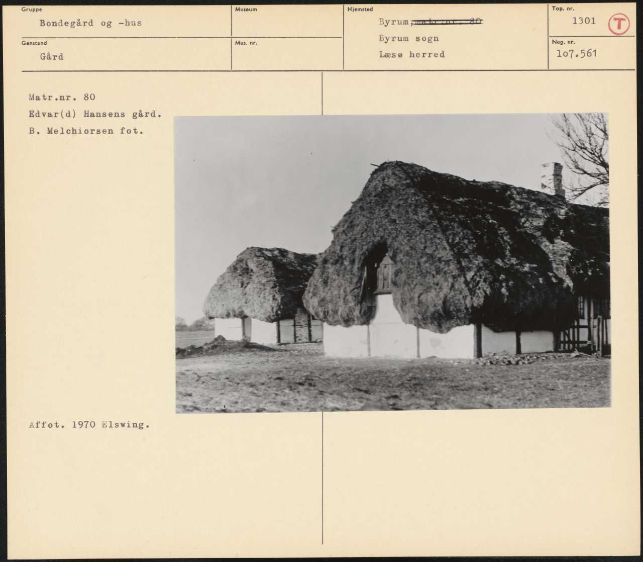Maskingenkendt tekst fra arkivkort. Matr.nr. 80 Edvar(d) Hansens gård. B. Melchiorsen fot. Affot. 1970 Elswing.