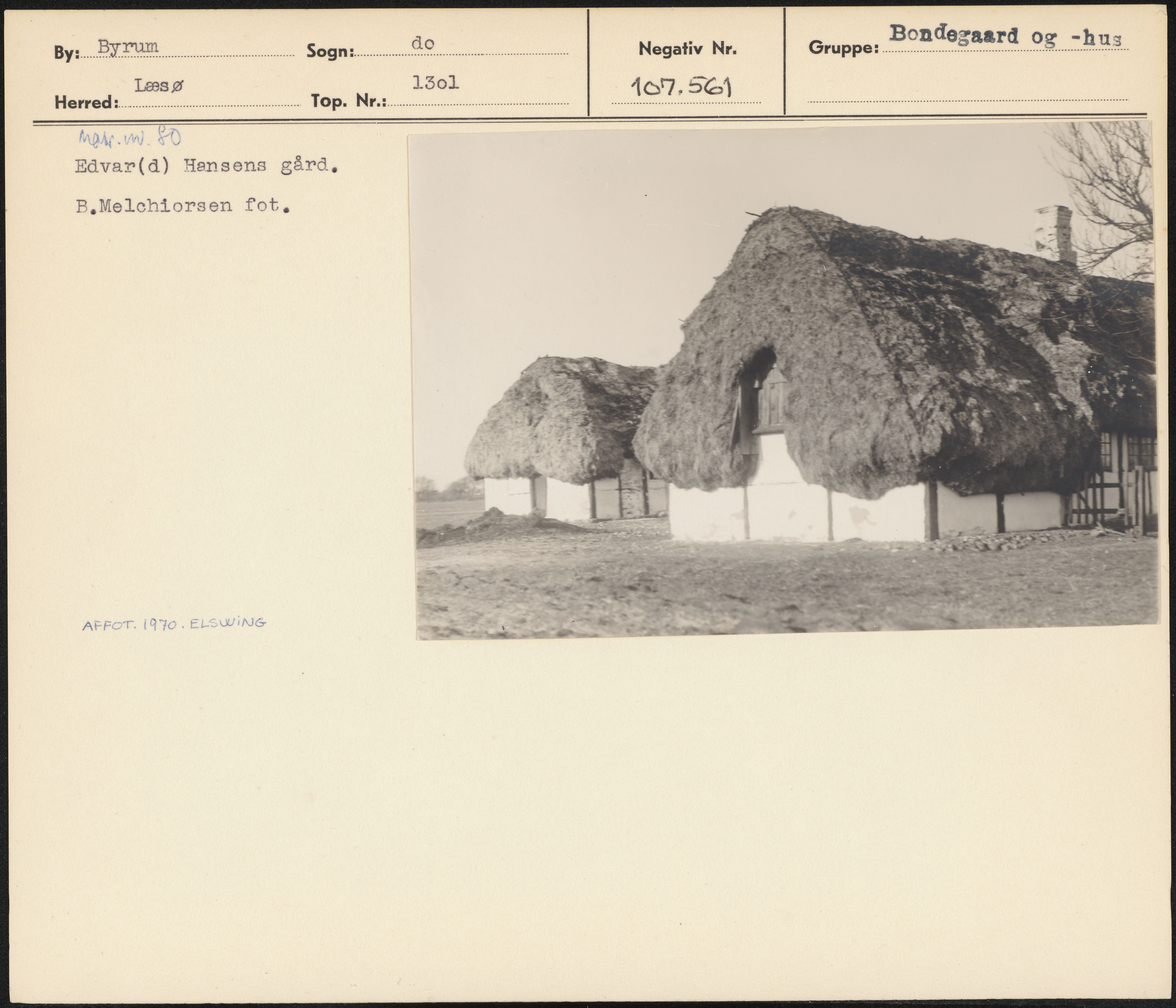 Maskingenkendt tekst fra arkivkort. MAA VN. En …— Edvar(d) Hansens gård, B,Melchiorsen fot, AFFCT. iQ JO . ELSWING