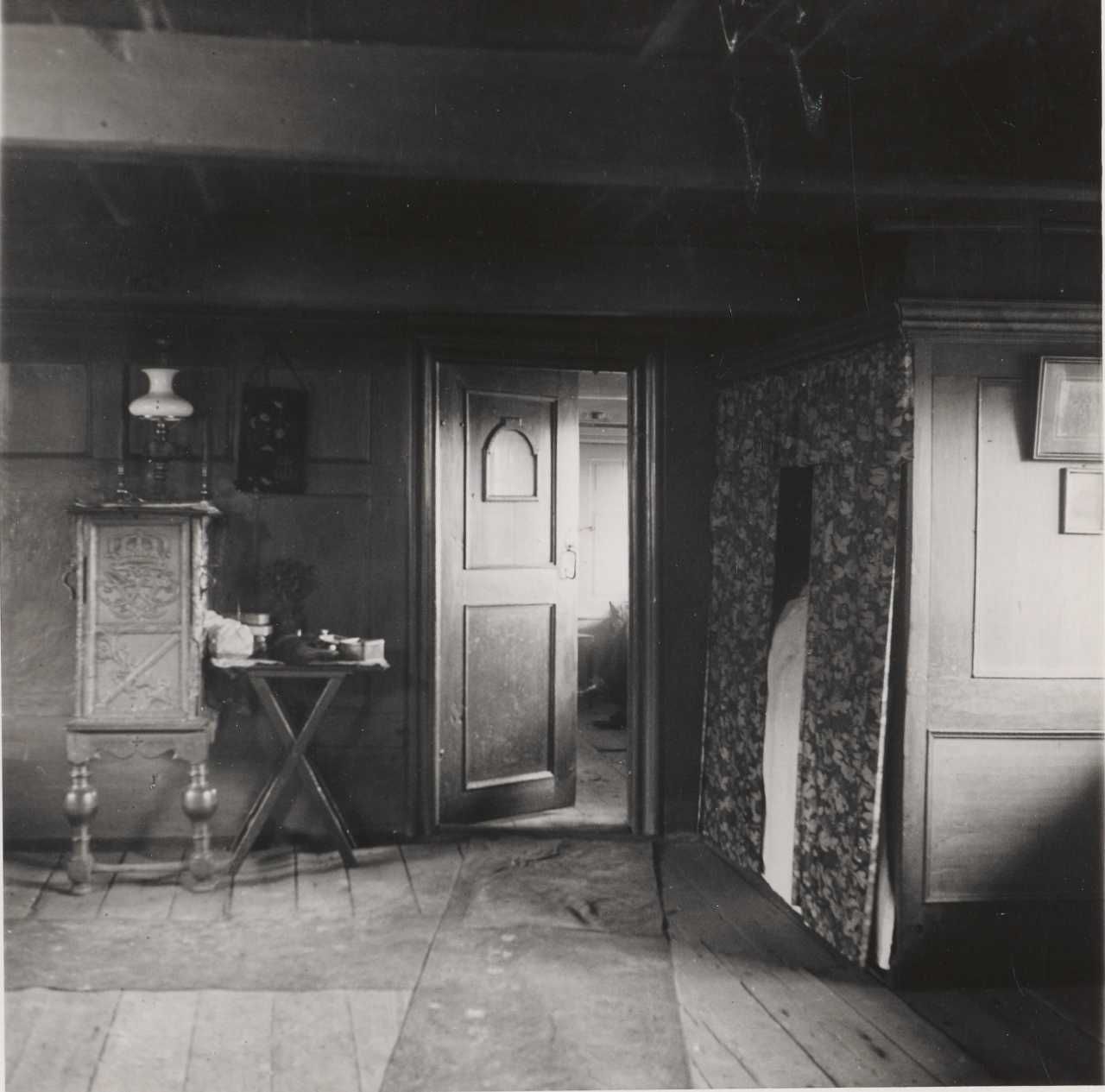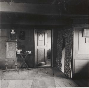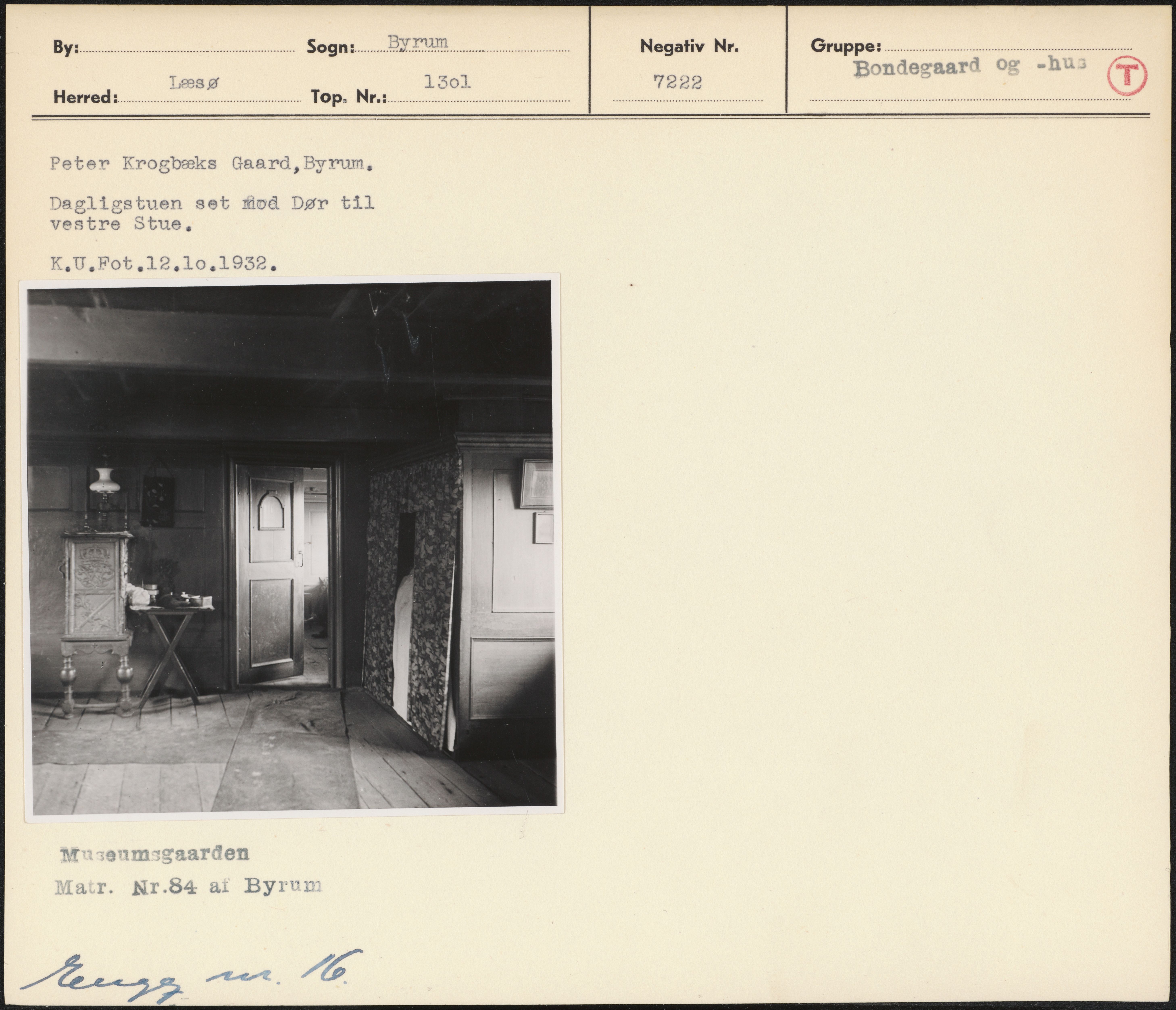 Maskingenkendt tekst fra arkivkort. Peter Krogbæks Gaard,Byrum, Dagligstuen set fvd Dør til vestre Stue, K.U.Fot ,12.10.1932, Muizenmsgaarden Ma:cr. Nr.84 ai Byrum