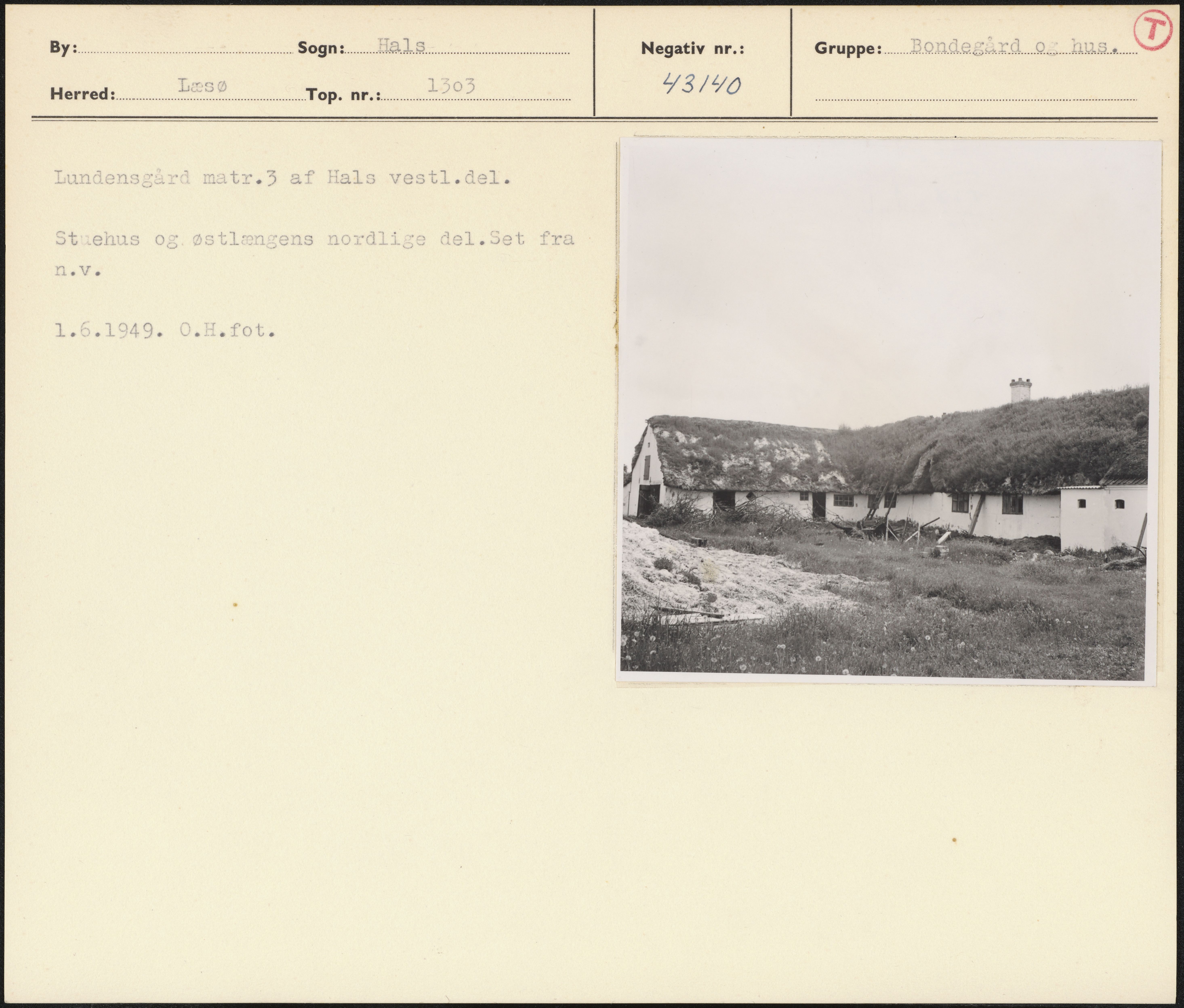 Maskingenkendt tekst fra arkivkort. Lundenszurd matr.3 af Hals vestl.del. St ehus og. østlængens nordlige del.Set fra n.Ve 1.56.1949. 0.H.fot.