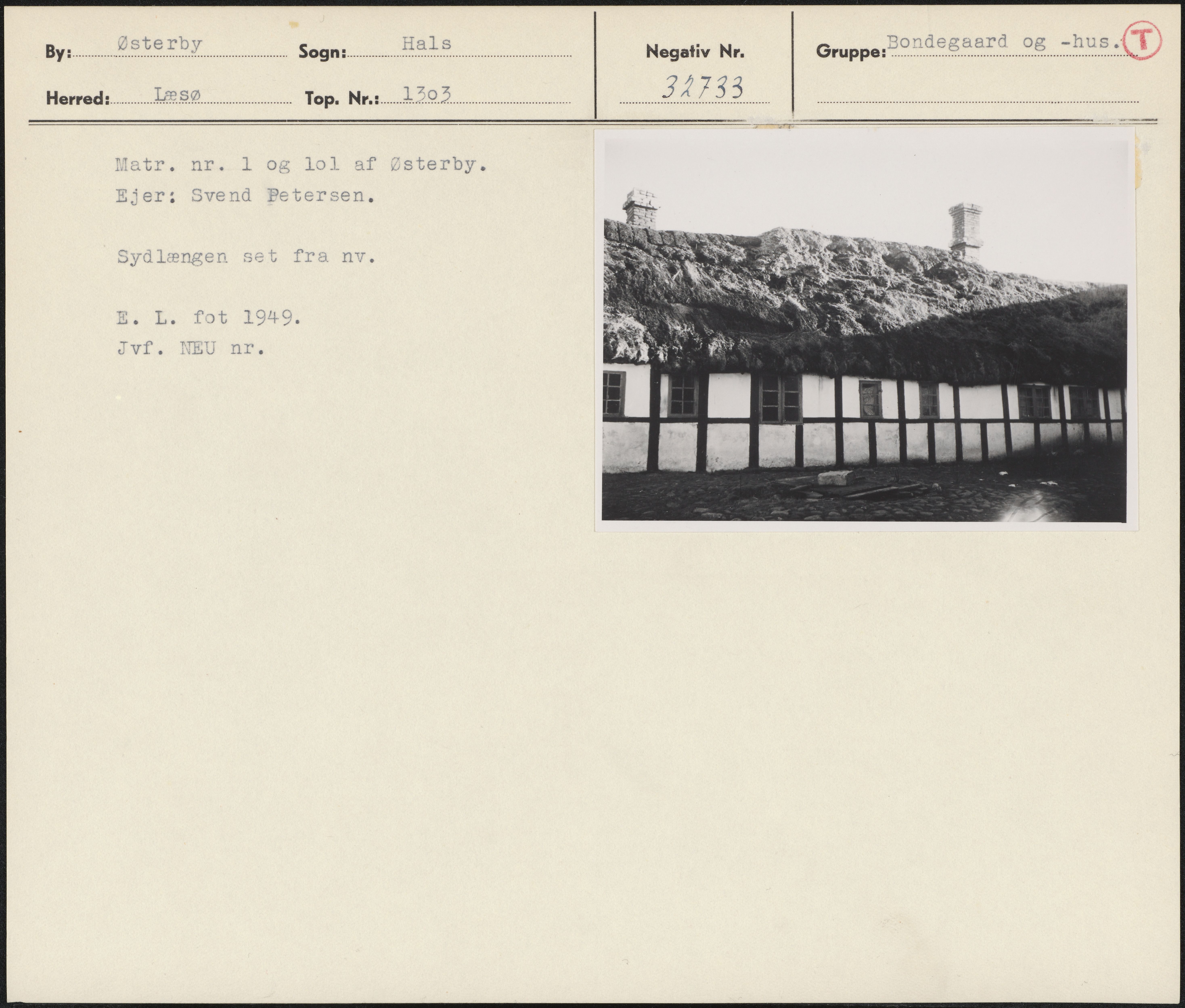 Maskingenkendt tekst fra arkivkort. Matr. nr. 1 og lol af Østerby. Ejer; Svend Petersen, i: Ku: i 4 Sydlængen set fra nv. E. L. fot 1949, Jvf. NEU nr.