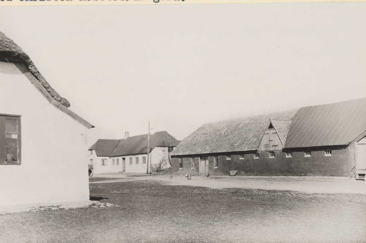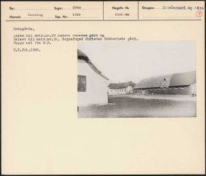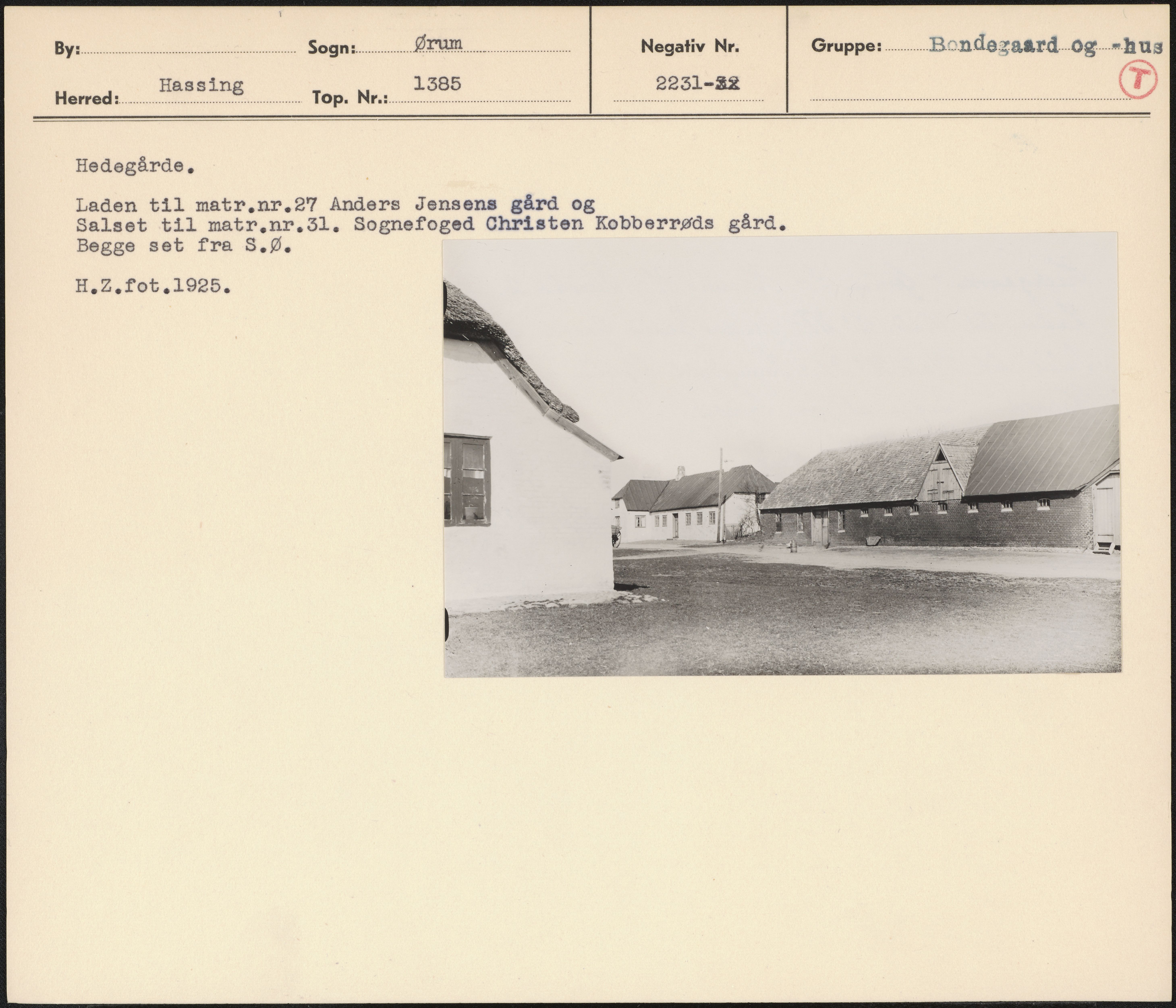 Maskingenkendt tekst fra arkivkort. Hedegårde, Laden til matr.nr.27 Anders Jensens gård og Salset til matr,nr.31, Sognefo, «Bl — - Begge set fra S.Ø. H.Z.fot.1925.