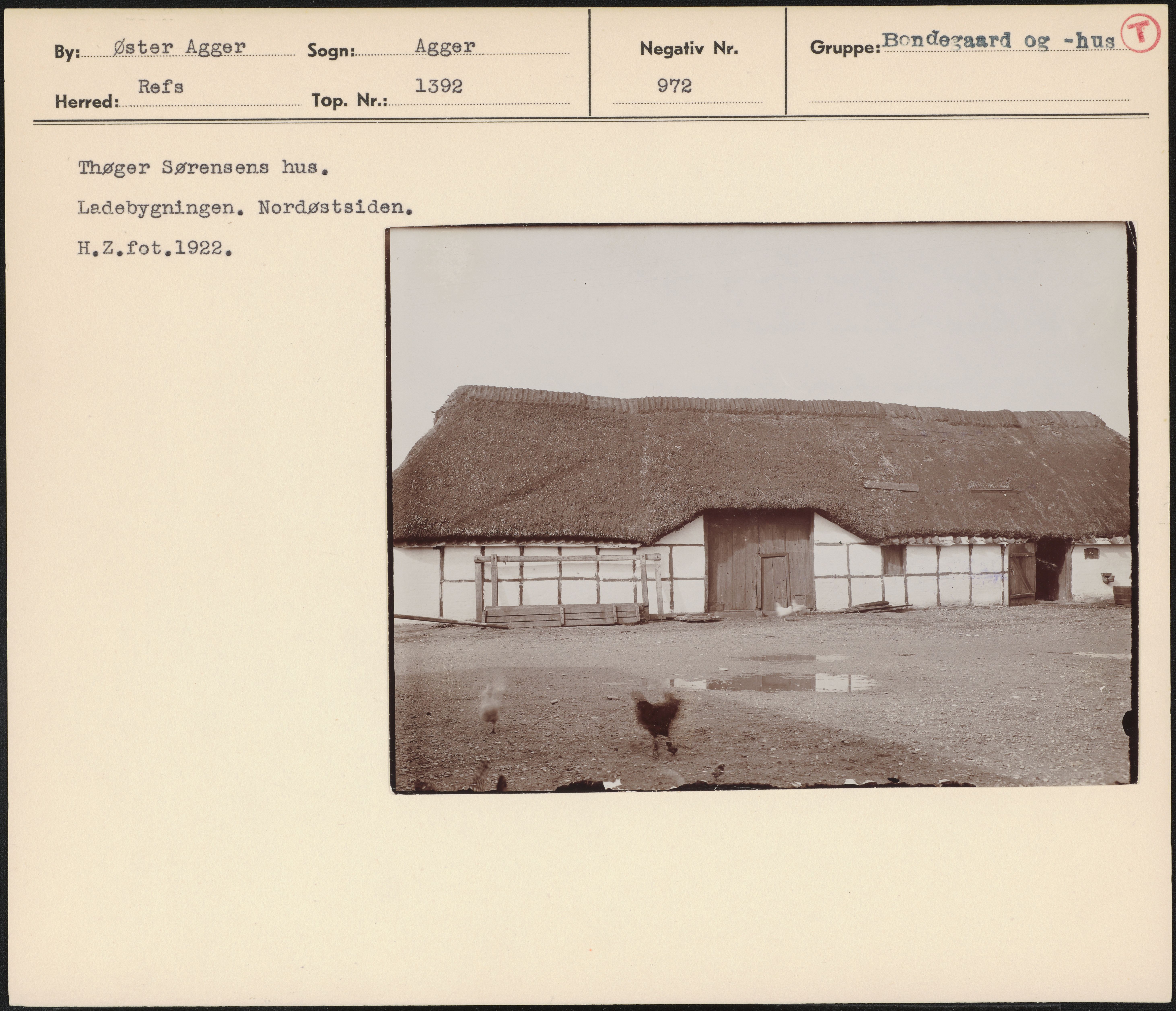 Maskingenkendt tekst fra arkivkort. Thøger Sørensens hus, Ladebygningen, Nordøstsiden, H.Z2.fot,1922.