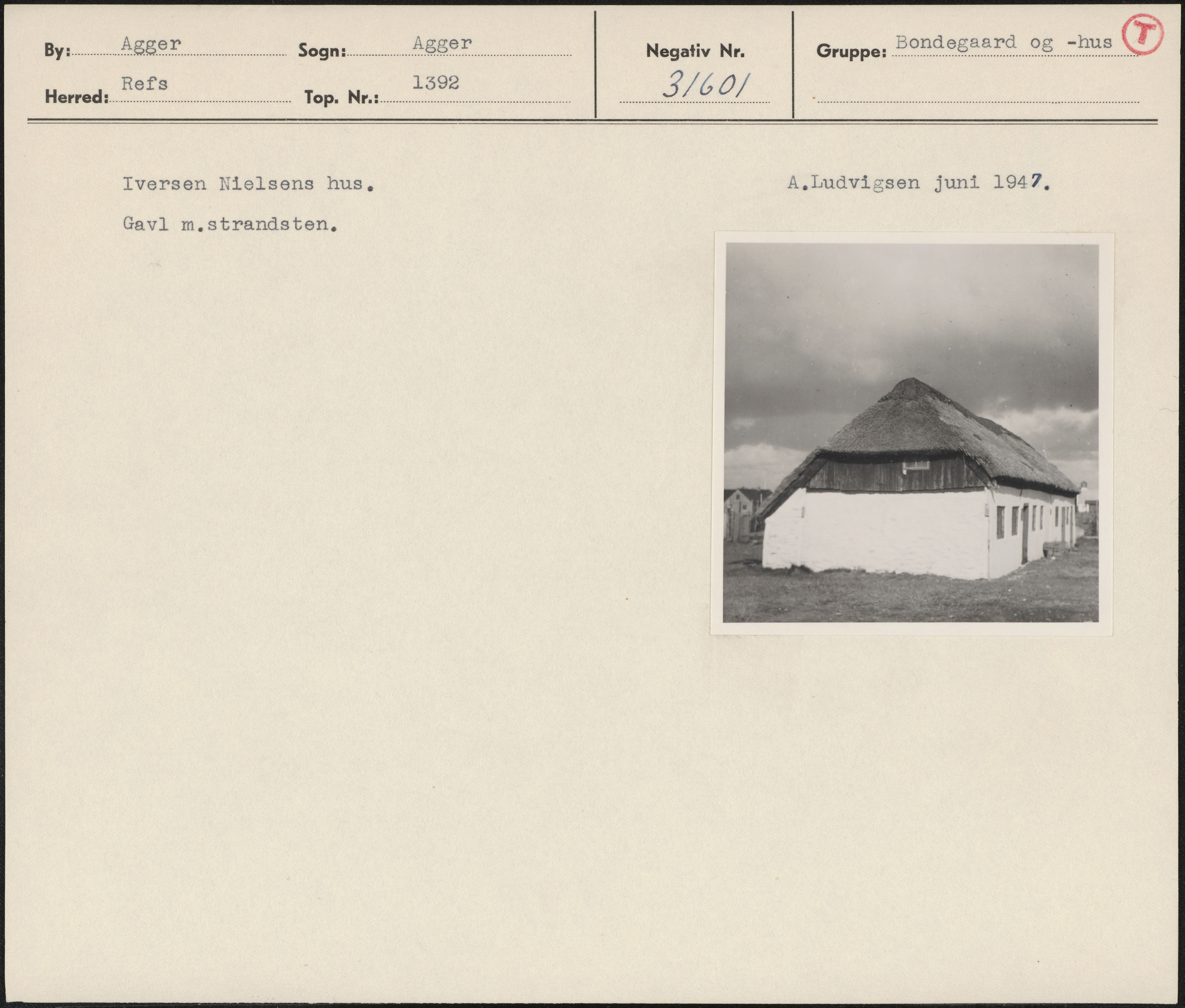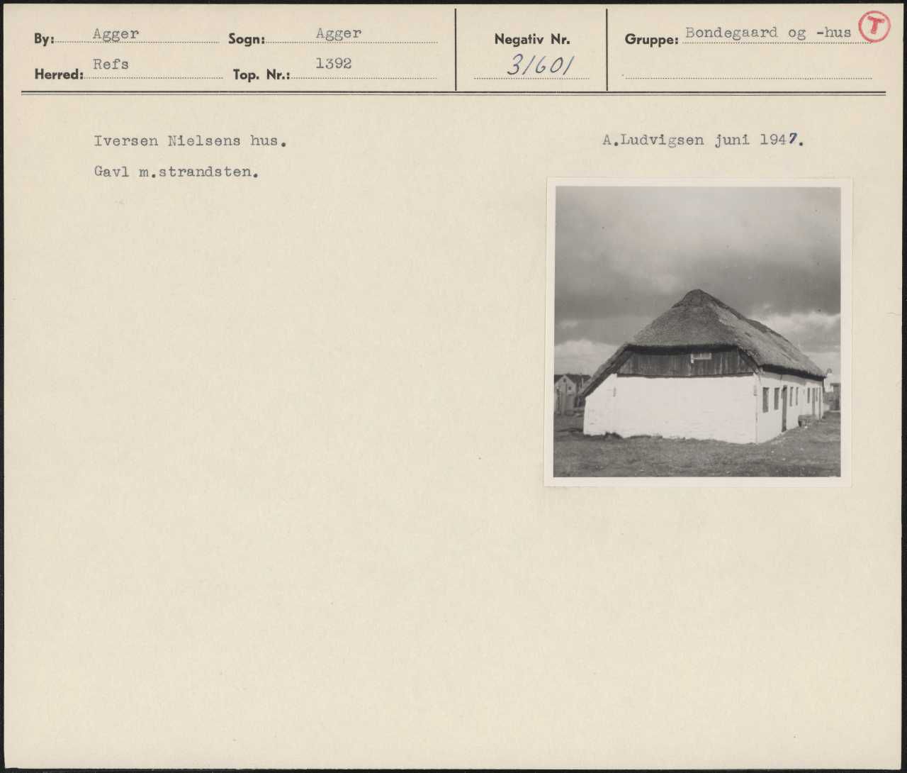 Maskingenkendt tekst fra arkivkort. Iversen Nielsens hus, A.Ludvigsen juni 1947, Gavl m,strandsten,