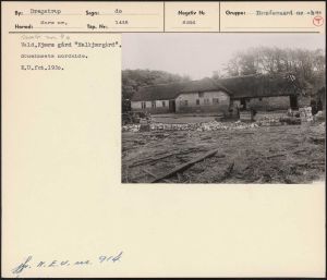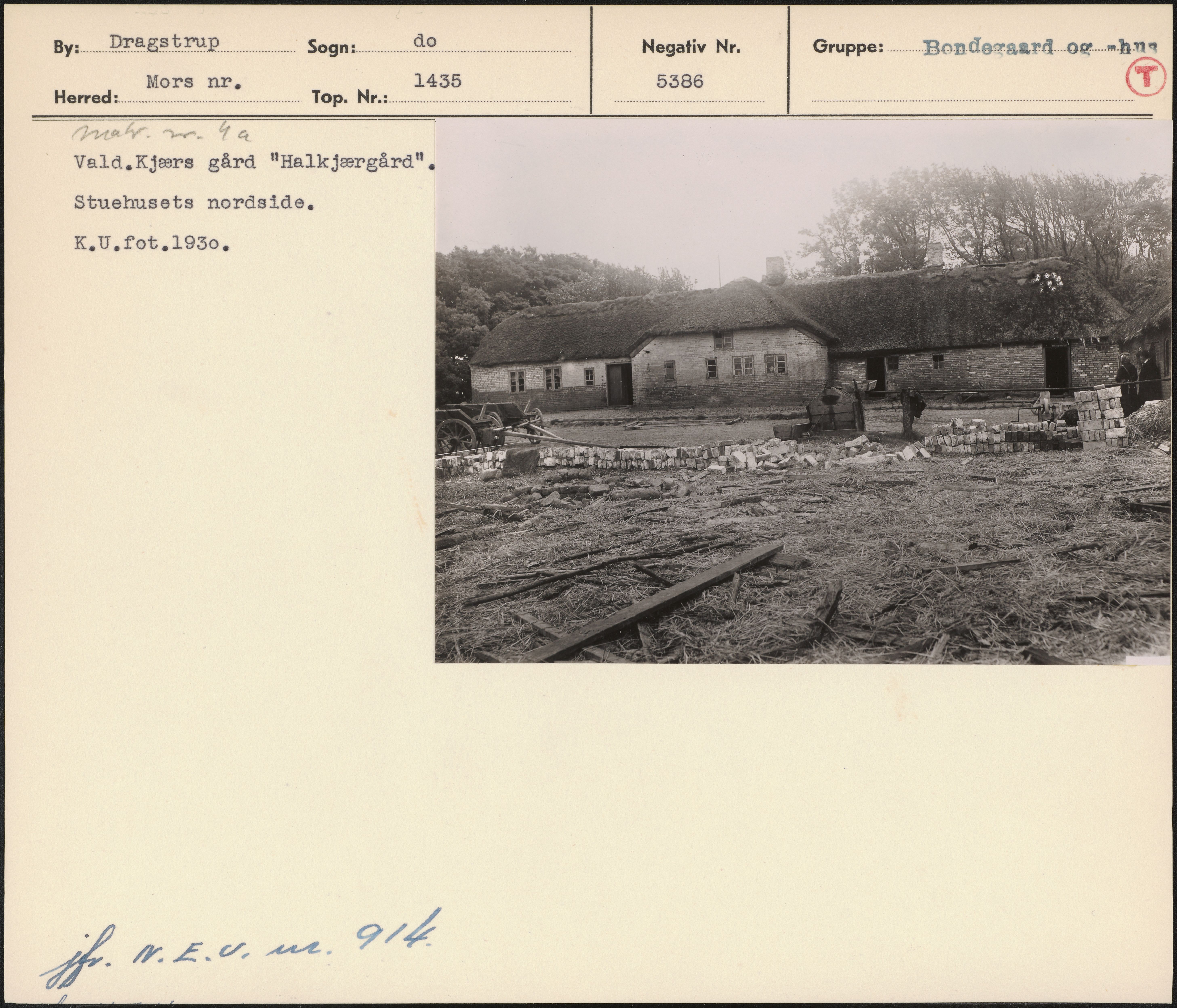 Maskingenkendt tekst fra arkivkort. Gir. er. I Vald,Kjærs gård "Halkjærgårda". Stuehusets nordside, K.U,fot 1930, på MW. ÆO0 te.