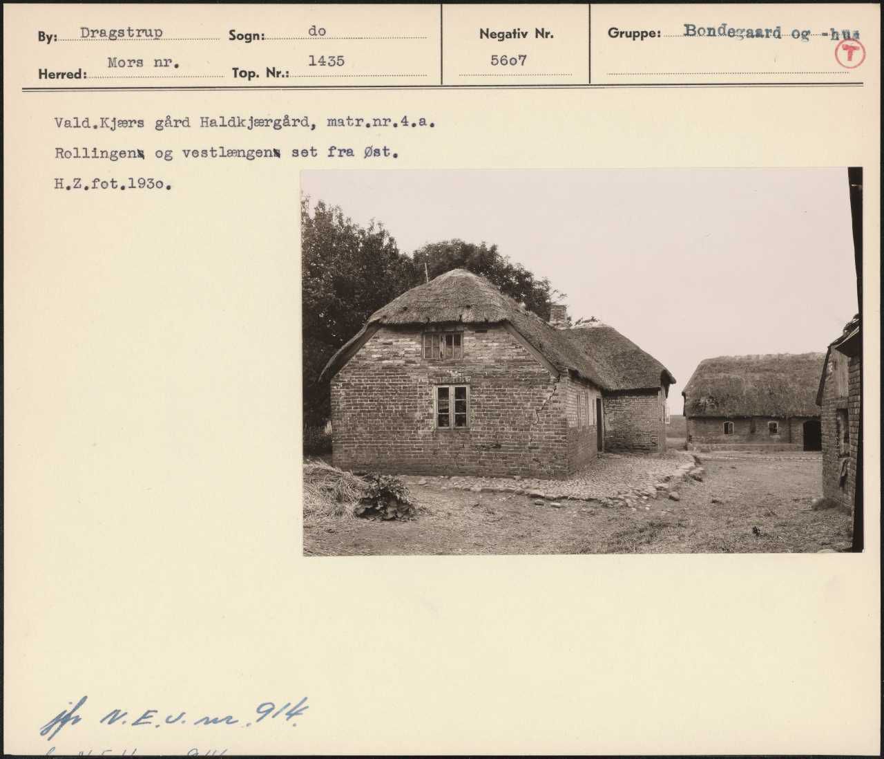 Maskingenkendt tekst fra arkivkort. nm Vald, Kjærs gård Haldkjærgård, matr.nr.4.8. Rollingeng og vestlængeng set fra Øst, H.Z.fot.1930, ” o W MA Æ e. jer P/F