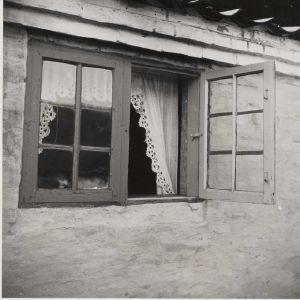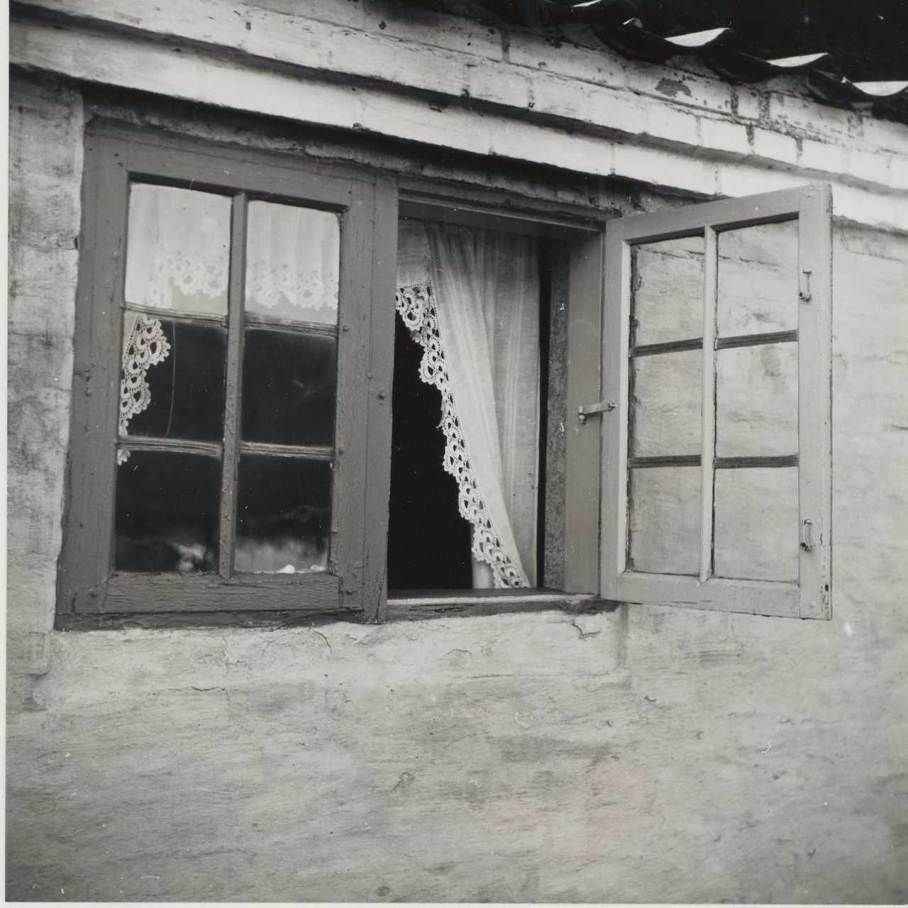 Maskingenkendt tekst fra arkivkort. Latr. Nr. 2la. Vindue lungst mod V. 1 Nordside &f Stuehus Lodrette Træsprosser med Skarpvinilet rro- T11,7n0s0t11 er Vinkeltopven dog høvlet af. Vandrette 3Jlysprosser med rrofilering. Fu Fioekamer,tidlicere Jaltkammer. He 2. fot. april 1944,