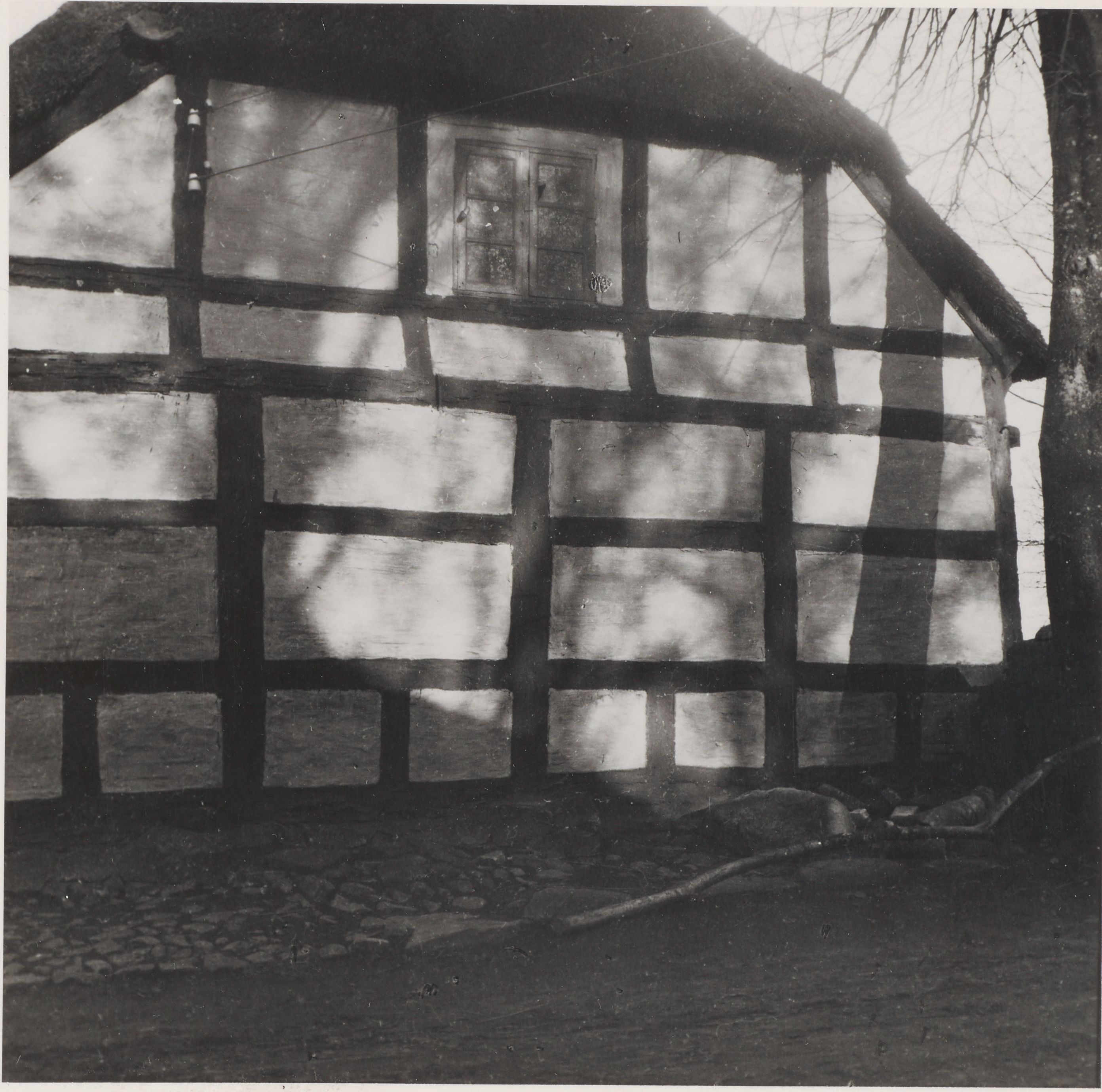 Maskingenkendt tekst fra arkivkort. Matr. Nr. 2la, Vestgavl af Stuehus. H. R. fot. April 1944.