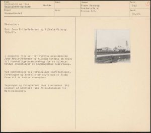 Maskingenkendt tekst fra arkivkort. Eksteriør. Fot. Jens Friis-Pedersen og Vilhelm Wittrup 1920/21. I sommeren 1920 og 1921 foretog arkitekterne Jens Friis-Pedersen og Vilhelm Wittrup en rejse til forskellige husmandsbrug for at tilveje- bringe oplysninger om bygningernes indretning. Ved henvendelse til forskellige institutioner, foreninger og konsulenter søgte man at finde frem til de bedste eksempler. Tegninger og fotografier blev i november 1965 skænket af arkitekt Jens Friis-Pedersen til Nationalmuseet.