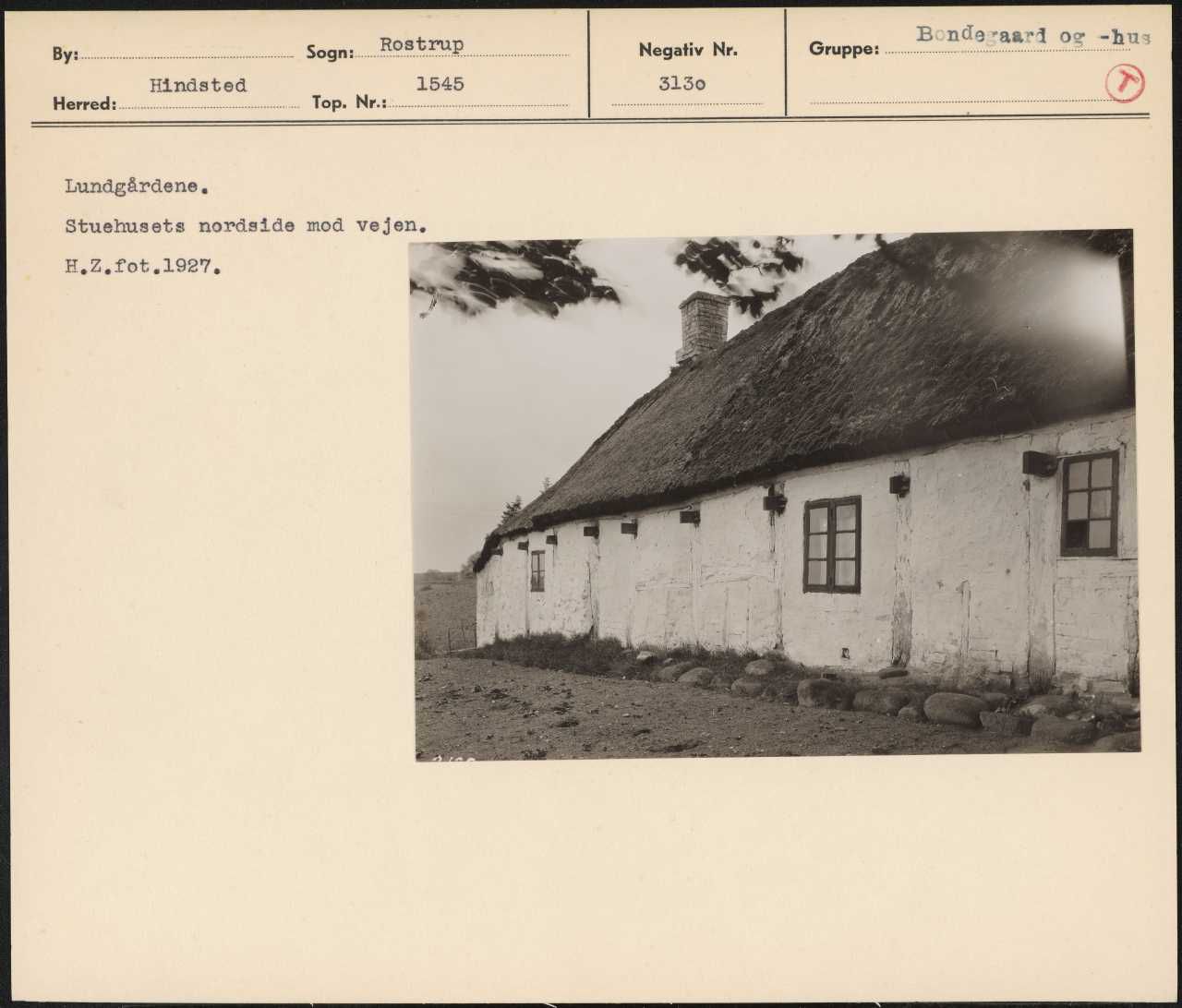 Maskingenkendt tekst fra arkivkort. Lundgårdene, Stuehusets nordside mod vejen. H.2.fot,1927.