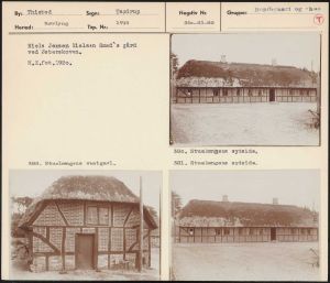 Maskingenkendt tekst fra arkivkort. Niels Jensen Nielsen Smed's gård ved Østerskoven, H.Z.fot,1920, 380, Stuelængens sydside, 382, Stuelængens vestgavl, 381, Stuelængens sydside,