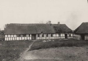 Maskingenkendt tekst fra arkivkort. Niels Jensen Nielsens gård. Stuelængens sydside, H.Z.fot.1929.