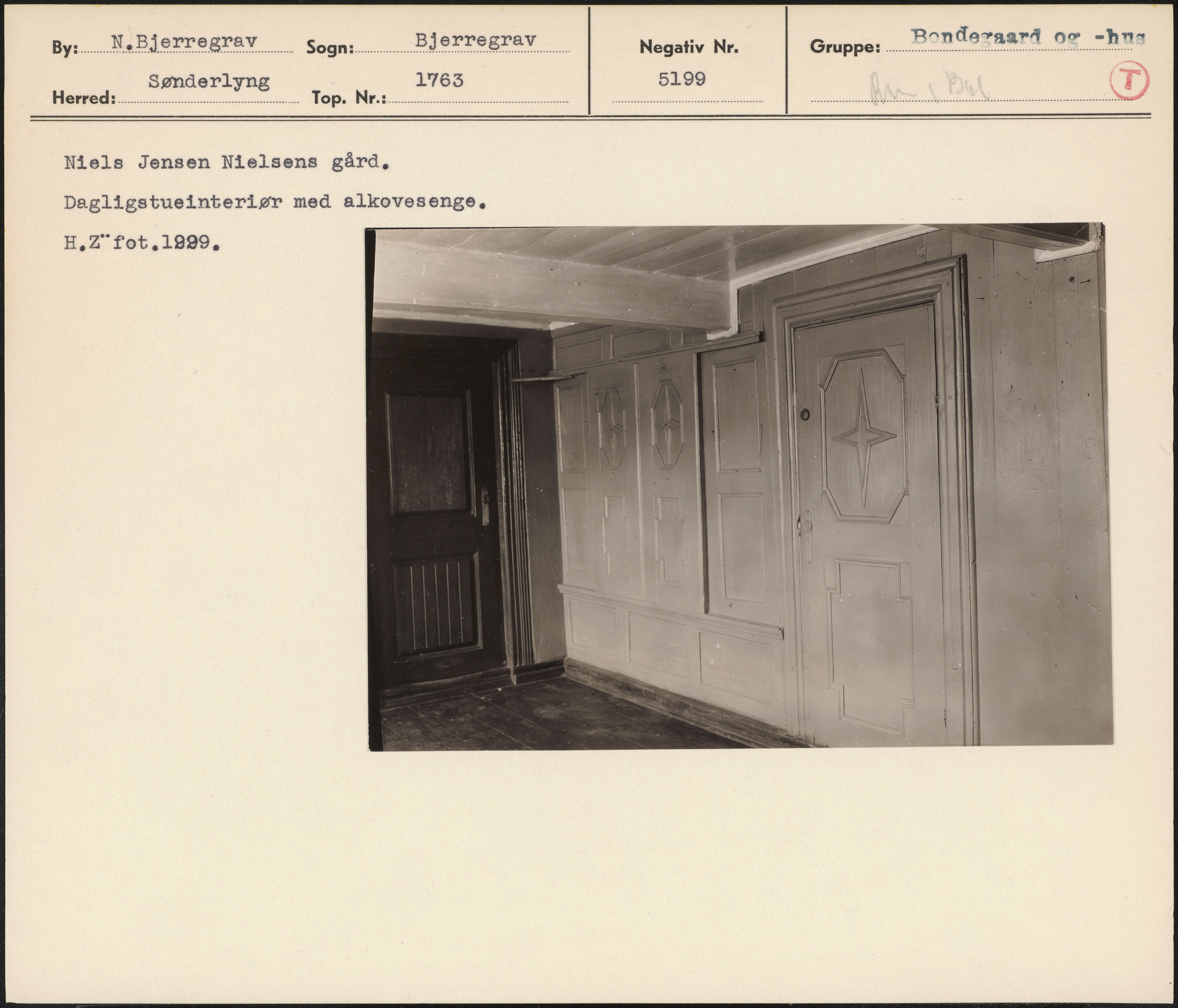 Maskingenkendt tekst fra arkivkort. Niels Jensen Nielsens gård, Dagligstueinteriør med alkovesenge- HZ" fot,1999.