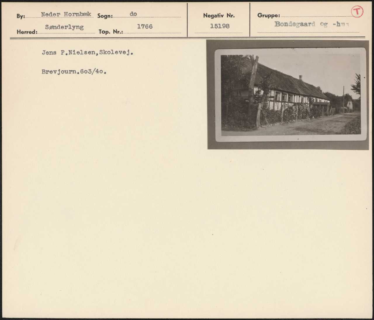 Maskingenkendt tekst fra arkivkort. Jens P,Nielsen, Skolevej. Brevjourn.603/40.