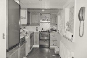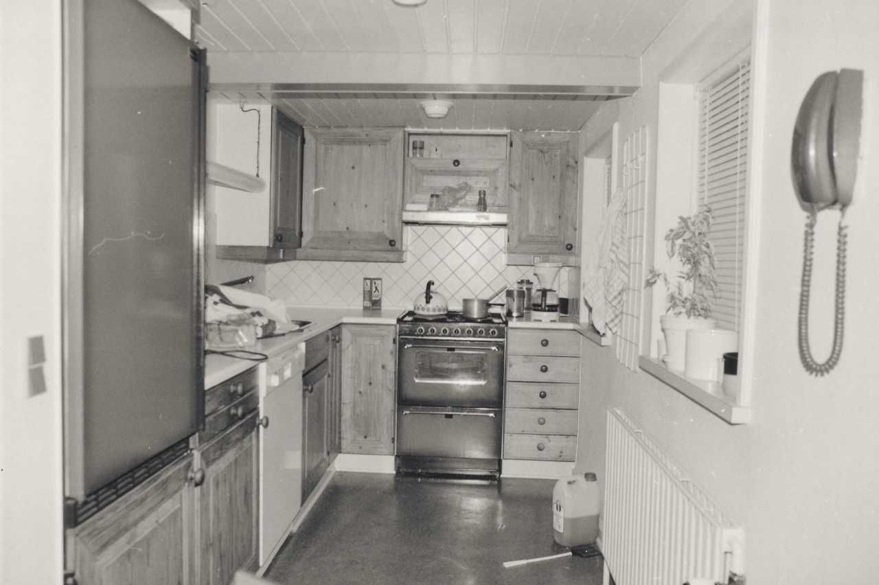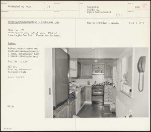 Maskingenkendt tekst fra arkivkort. BONDEGÅRDSUNDERSØGELSE - DJURSLAND 1989 Matr. nr. 7D Bindingsværkshus beboet siden 1976 af lønarbejderfamilie i 30erne med to børn. Køkken Køkken moderniseret med rustikke køkkenelementer i 1988, Befaskøkken købt i Grenå, Okkergule døre, Fot. BV 1.11.89 NEU nr. Plan og dokumenta- nm Itionsmateriale J.nr. 524/89 BV/jg Un 14,1-307 Hus 2: Interiør - køkken Kort 1 af 2