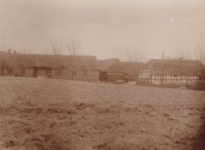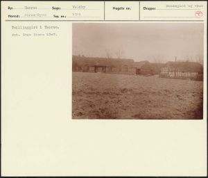 Maskingenkendt tekst fra arkivkort. Tvillinggård i Thorsø. fot. Sven Risom 1907.