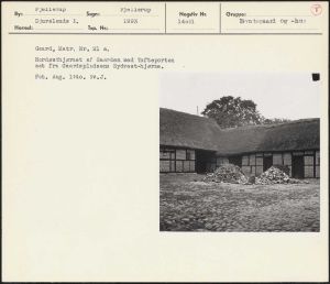 Maskingenkendt tekst fra arkivkort. Gaard, Matr, Nr. 21 8, Nordøsthjørnet af Gaarden med Tofteporten set fra Gaardspladsens Sydvest-hjørne- Fot. Aug. 1940. Sv.J. UV dee af