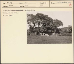 Maskingenkendt tekst fra arkivkort. Kol&bygård ellem= kålbsødse, Matr.nr.16.8. Gården set fra Vest, H.Z.fot,1926.