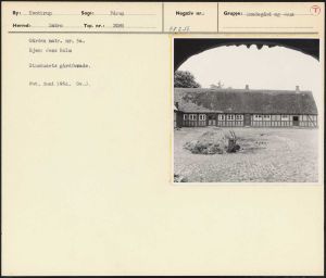 Maskingenkendt tekst fra arkivkort. Gården matr. nr. 5a. Ejer: Jens Holm Stuehusets gårdfauwade. Fot. juni 1954. Sv.J.
