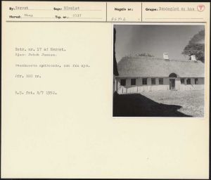 Maskingenkendt tekst fra arkivkort. 0 Matr. nr. 17 af Hørret. Ejer: Jakob Jensen. Stuehusets sydfacade, set fra syd. Jfr. NEU nr. B.S. fot. 8/7 1952.