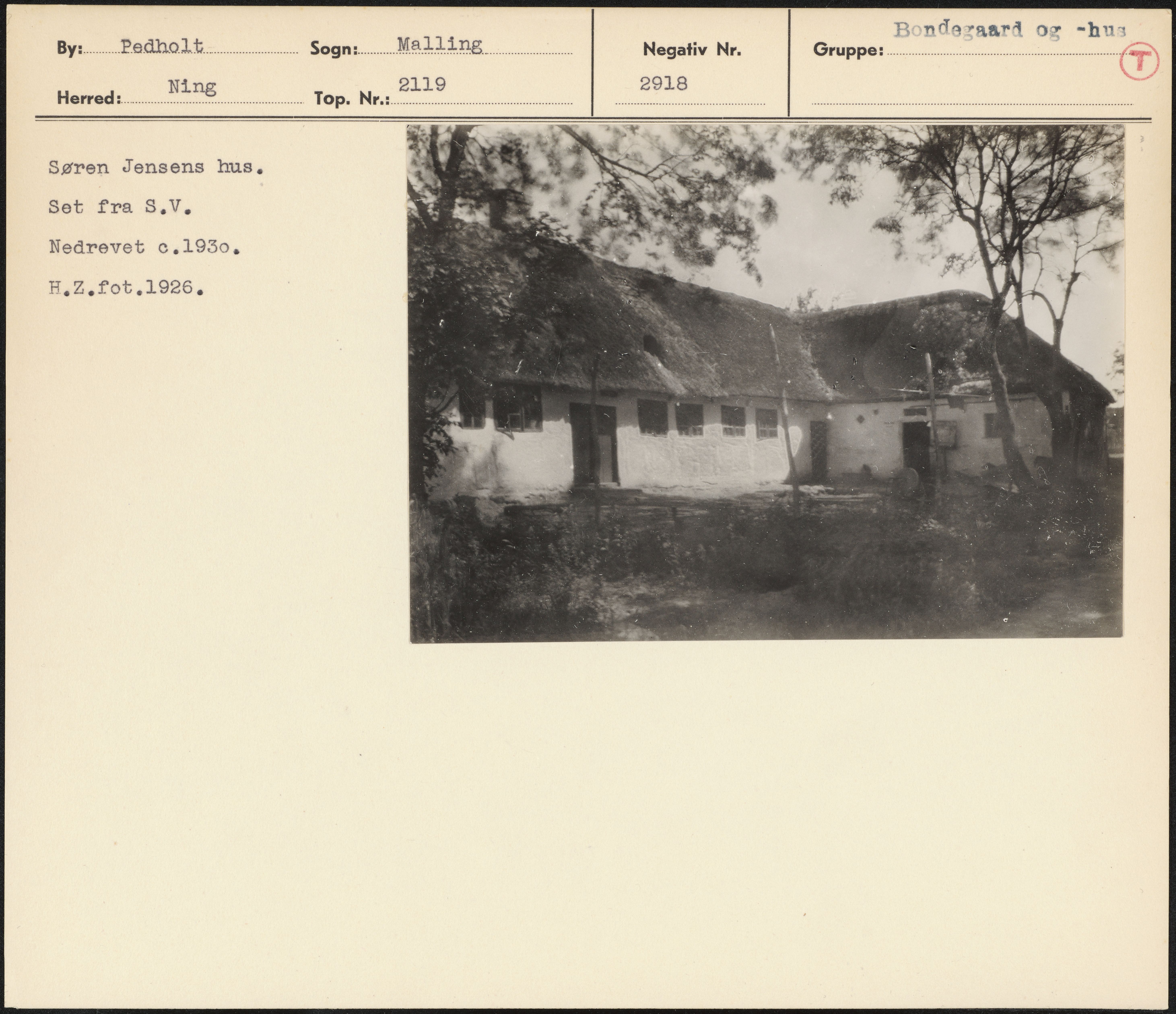 Maskingenkendt tekst fra arkivkort. Søren Jensens hus, Set fra S.V. Nedrevet c.1930, H.Z2.fot.1926.