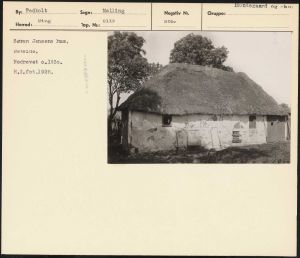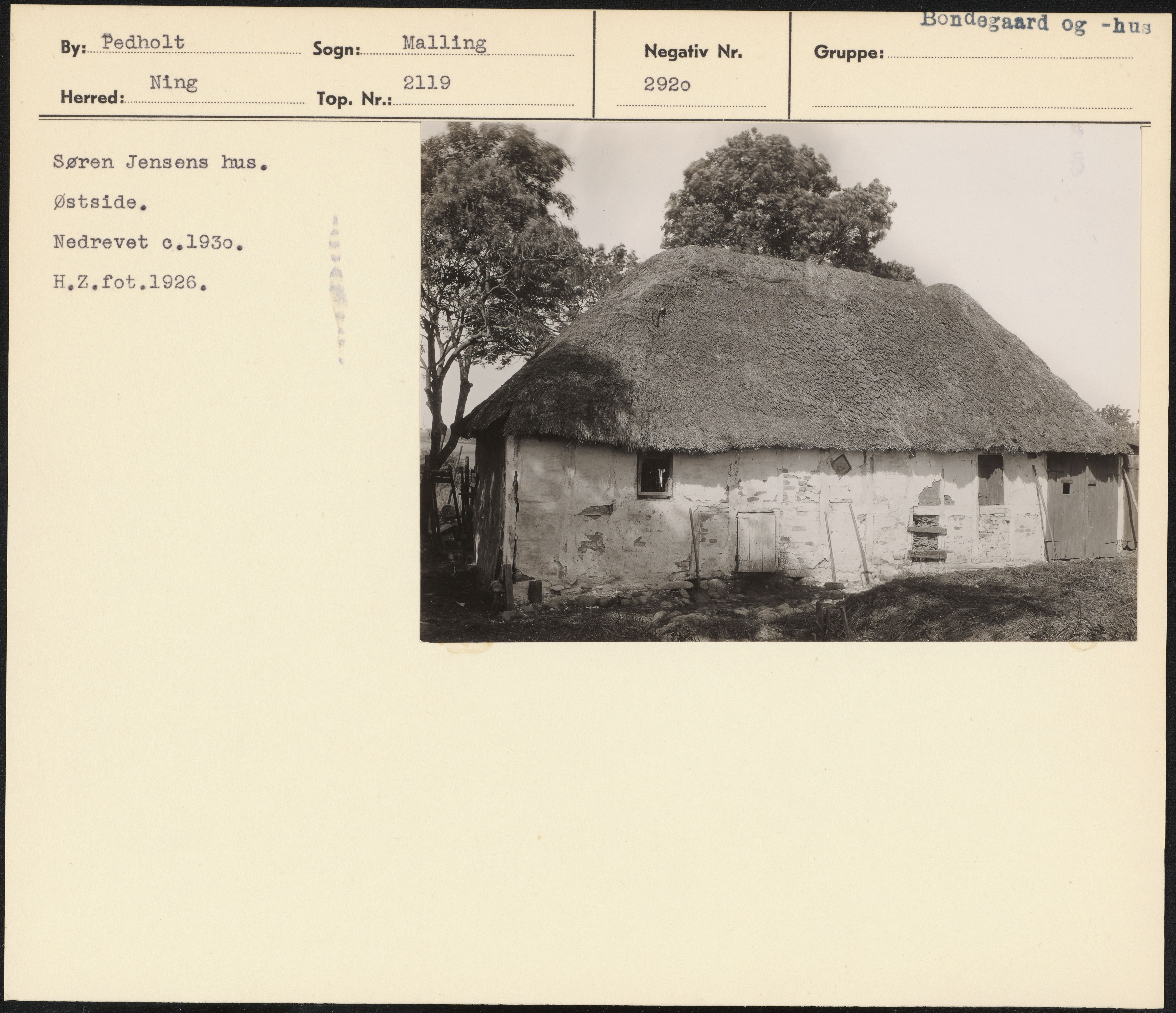 Maskingenkendt tekst fra arkivkort. E. et rr Søren Jensens hus, Østside- Nedrevet 0,1930; H,2,fot.1926, D