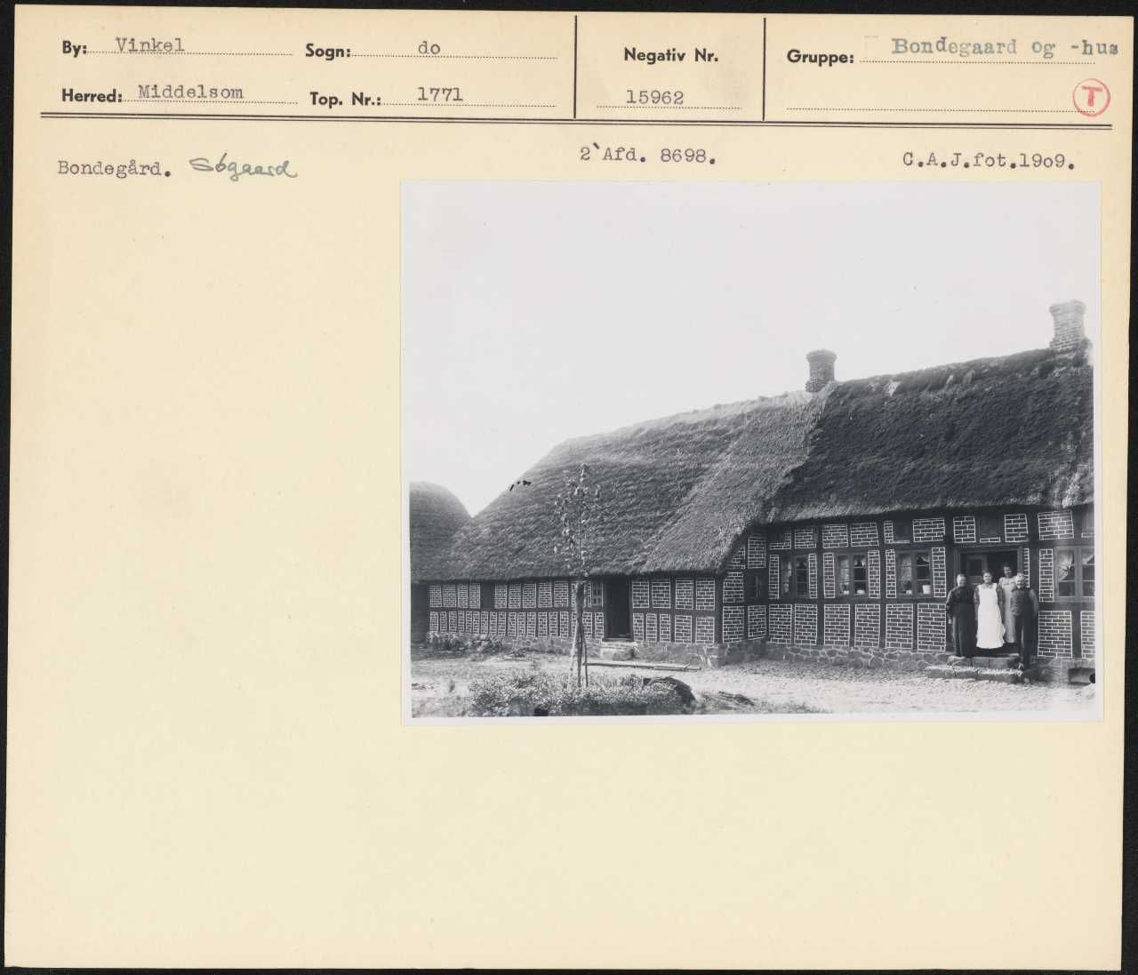 Maskingenkendt tekst fra arkivkort. 2' Afd. Bondegård, DSéqaace 8698 C.A.J.fot 1909, es