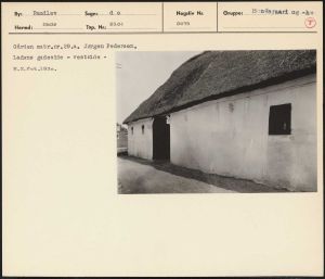 Maskingenkendt tekst fra arkivkort. Gården matr,nr.29,8. Jørgen Pedersen, Ladens gadeside - vestside - H.Z.fot 1930.