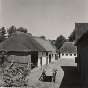 Maskingenkendt tekst fra arkivkort. Matr. 6 a, Thorvald Rasmussen. Laden set fra syd. P.M. fot. 8/7 1952. Jf. NEU nr.