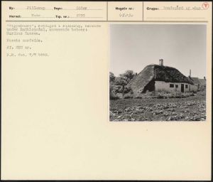 Maskingenkendt tekst fra arkivkort. Vippehuset", Østligst i Fillerup, hørende under Rathlousdal, nuværende beboer: Marinus Hansen. Husets nordside. Jf. NEU nr. P.M. fot. 7/7 1952.