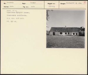 Maskingenkendt tekst fra arkivkort. Matr. 15 b. Ejer:Hans Hydgård Hansen, Stuehusets nordfacade, P.M. fot. 5/7 1952. Jf. NEU nr.