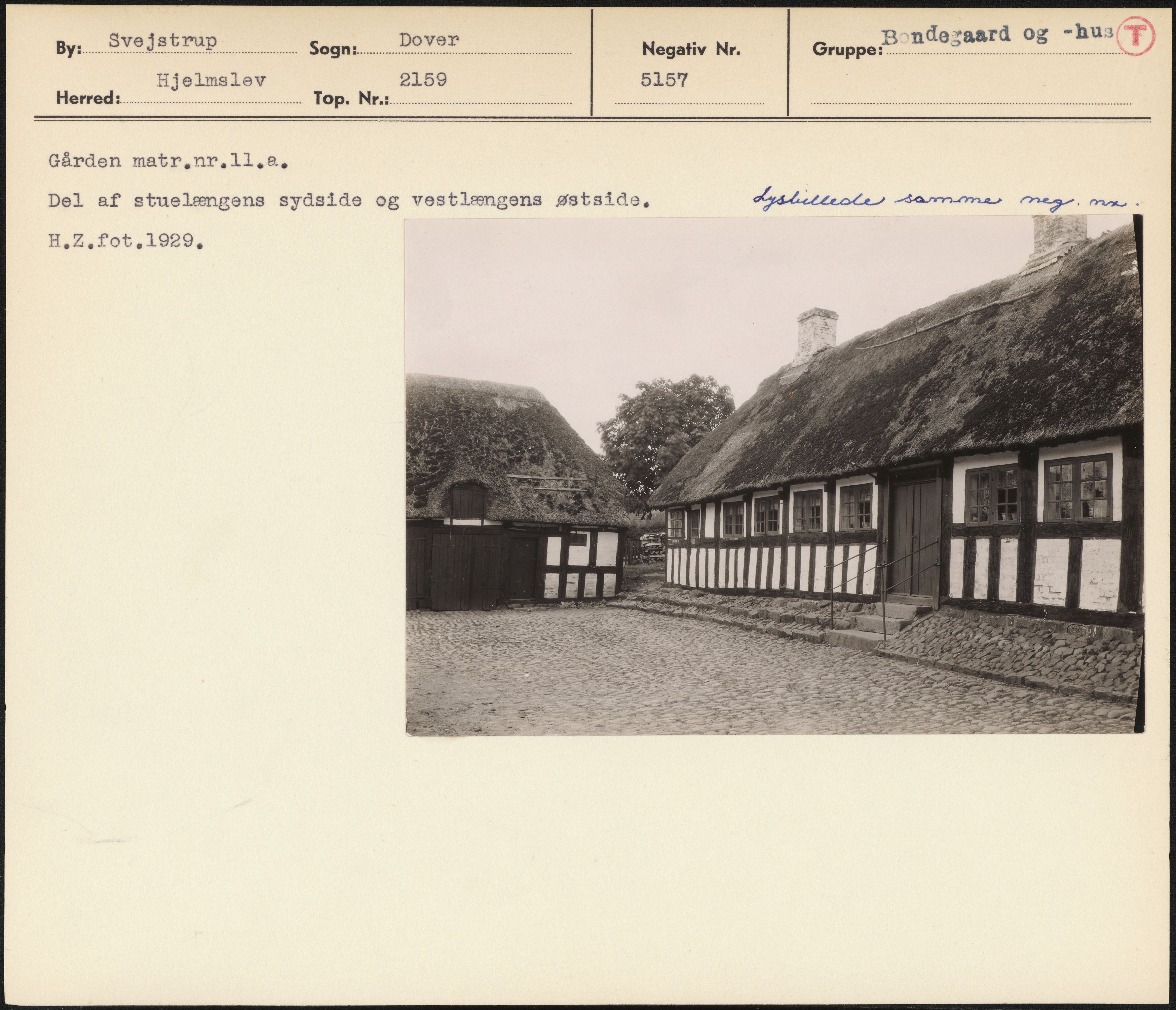 Maskingenkendt tekst fra arkivkort. Gården matr.nr.11.2. Del af stuelængens sydside og - PE H.Z.fot 1929.