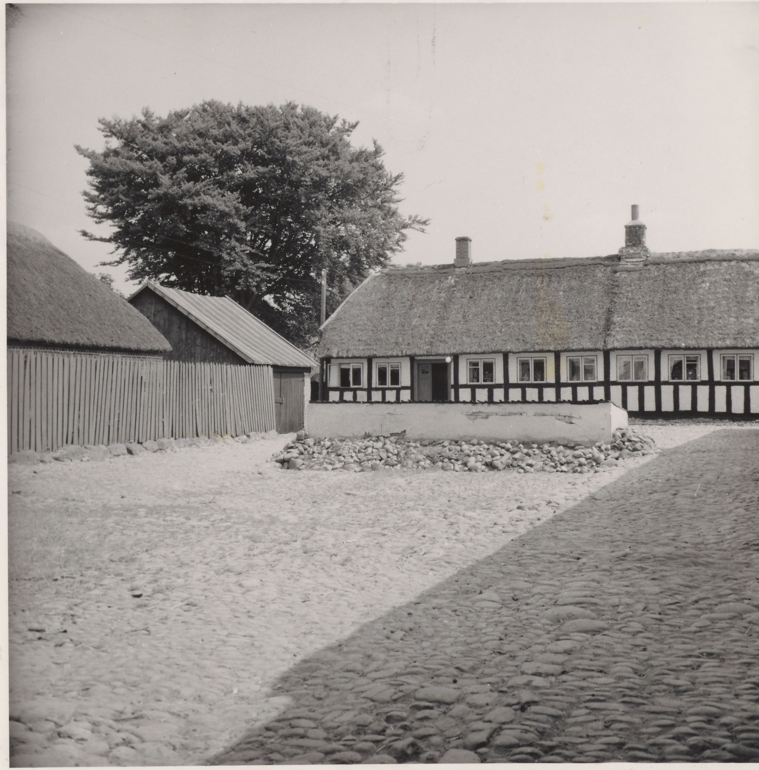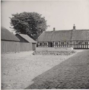 Maskingenkendt tekst fra arkivkort. Gården matr.nr. 4a. Ejer: Kirstine Jensen. Jfr. NEU.nr. Fot. 1952. Sv.J. 1. Stuehus og sydlænge set fra vest 2. Stuehuset og møddingstedet på i gården. Obs. mødding foran. gårdspladsen set fra dennes VEV = Ajørne t 42810 UR y