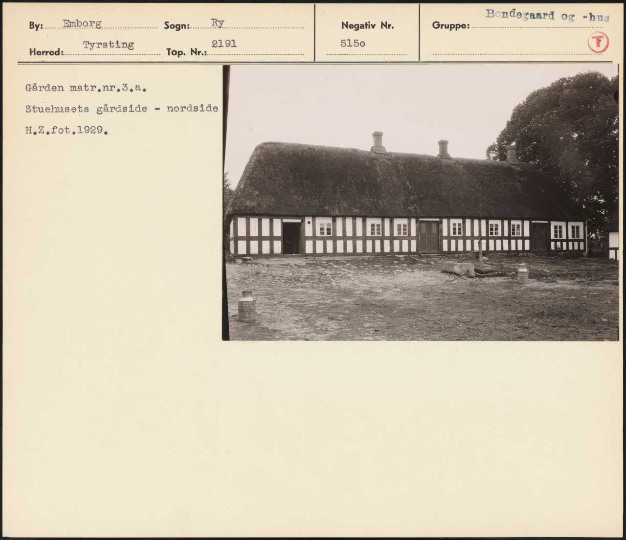 Maskingenkendt tekst fra arkivkort. Gården matr.nr.3.8. Stuehusets gårdside - nordside H.Z.fot,1929.