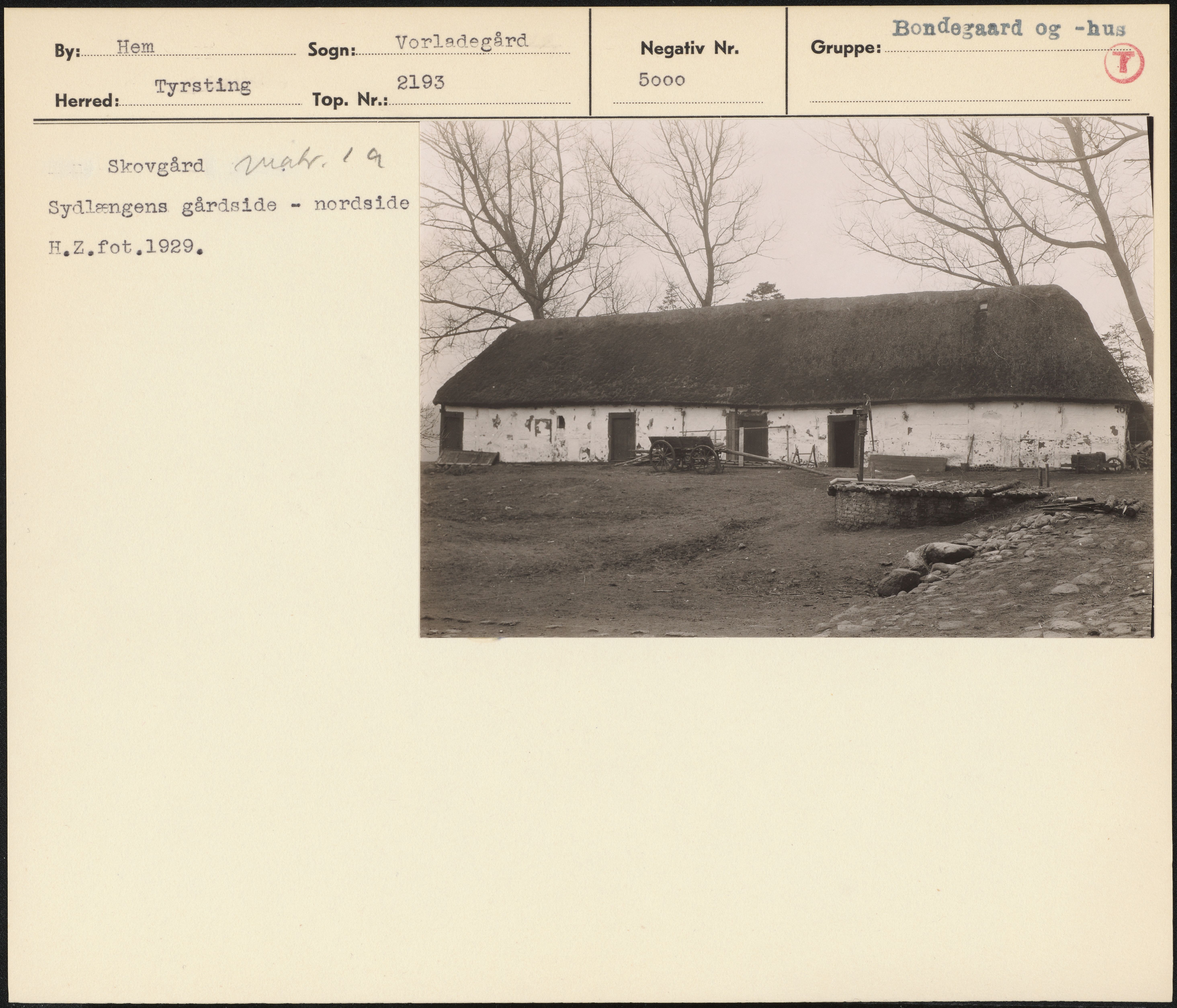Maskingenkendt tekst fra arkivkort. . Skovgård qmhr få Sydlængens gårdside - nordside H.Z.fot,1929,