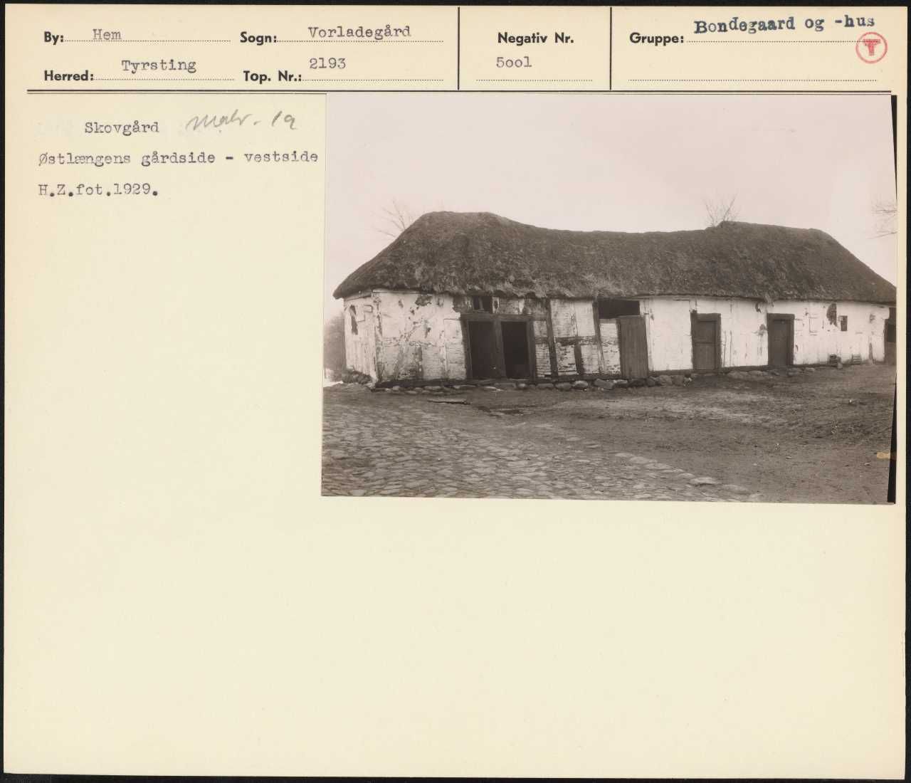 Maskingenkendt tekst fra arkivkort. Skovgård rn(9 Østlængens gårdside - vestside H.Z.fot,1929