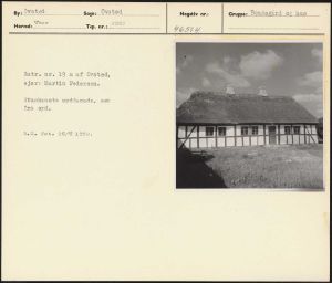 Maskingenkendt tekst fra arkivkort. Matr. nr. 19 a af Ovsted, ejer: Martin Pedersen. Stuehusets sydfacade, set fra syd. B.S. fot. 26/6 1952.