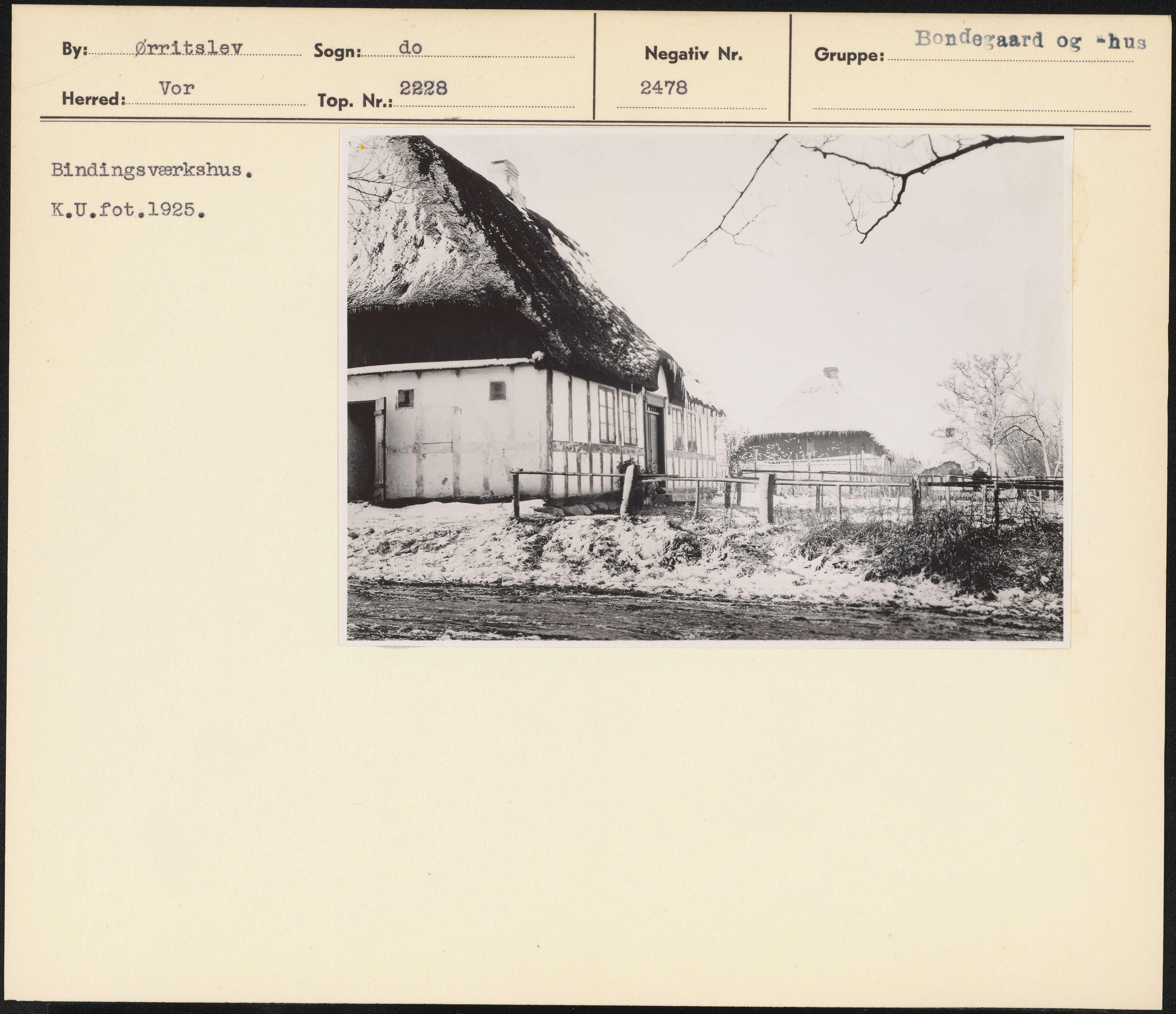 Maskingenkendt tekst fra arkivkort. Bindingsværkshus, K.U.fot 1925.