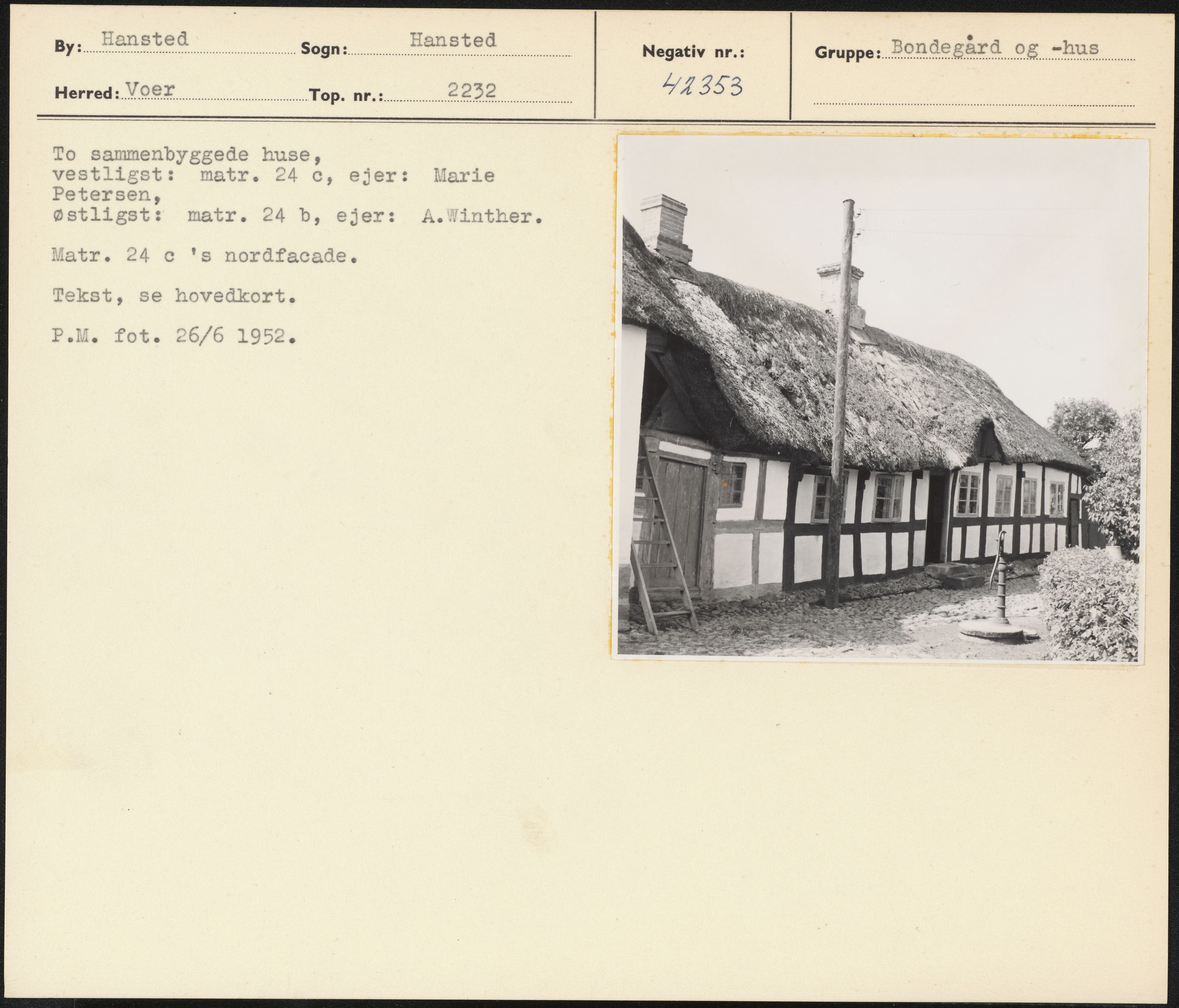 Maskingenkendt tekst fra arkivkort. To sammenbyggede huse, nm vestligst: matr. 24 c, ejer: Marie Petersen, østligst: matr. 24 b, ejer: A.Vinther. Matr. 24 c "'s nordfacade. Tekst, se hovedkort. P.M. fot. 26/6 1952.